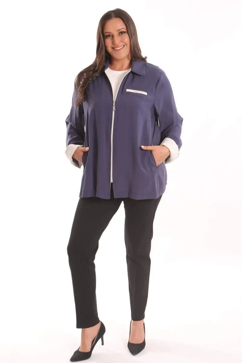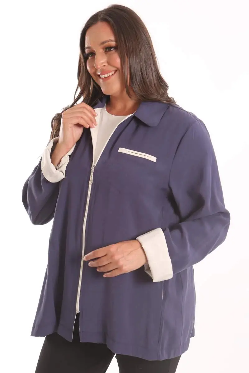 Büyük Beden Fermuarlı Büyük Beden İndigo Trençkot