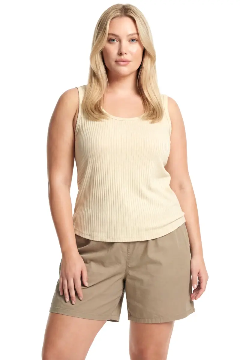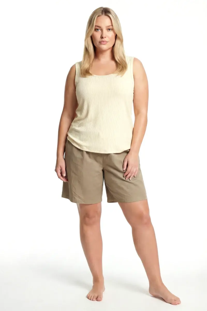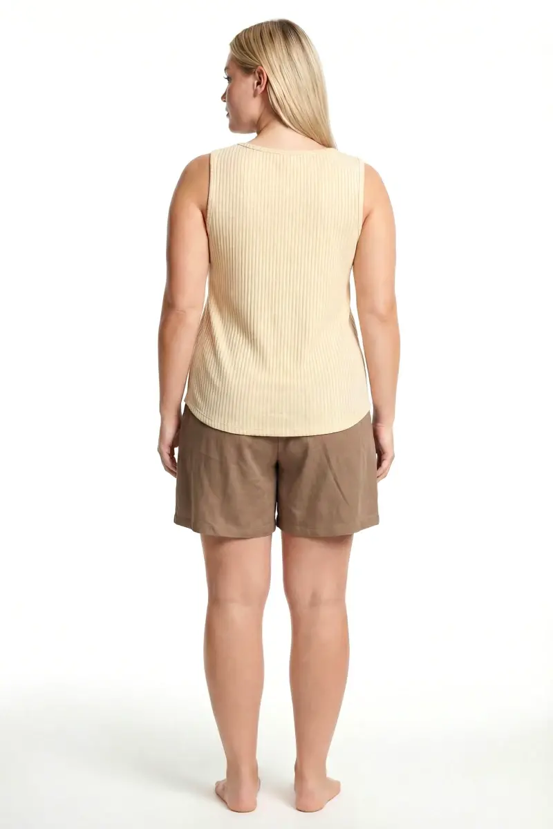 Büyük Beden Fitilli Şortlu Atletli Kadın Pijama Takımı – Bej