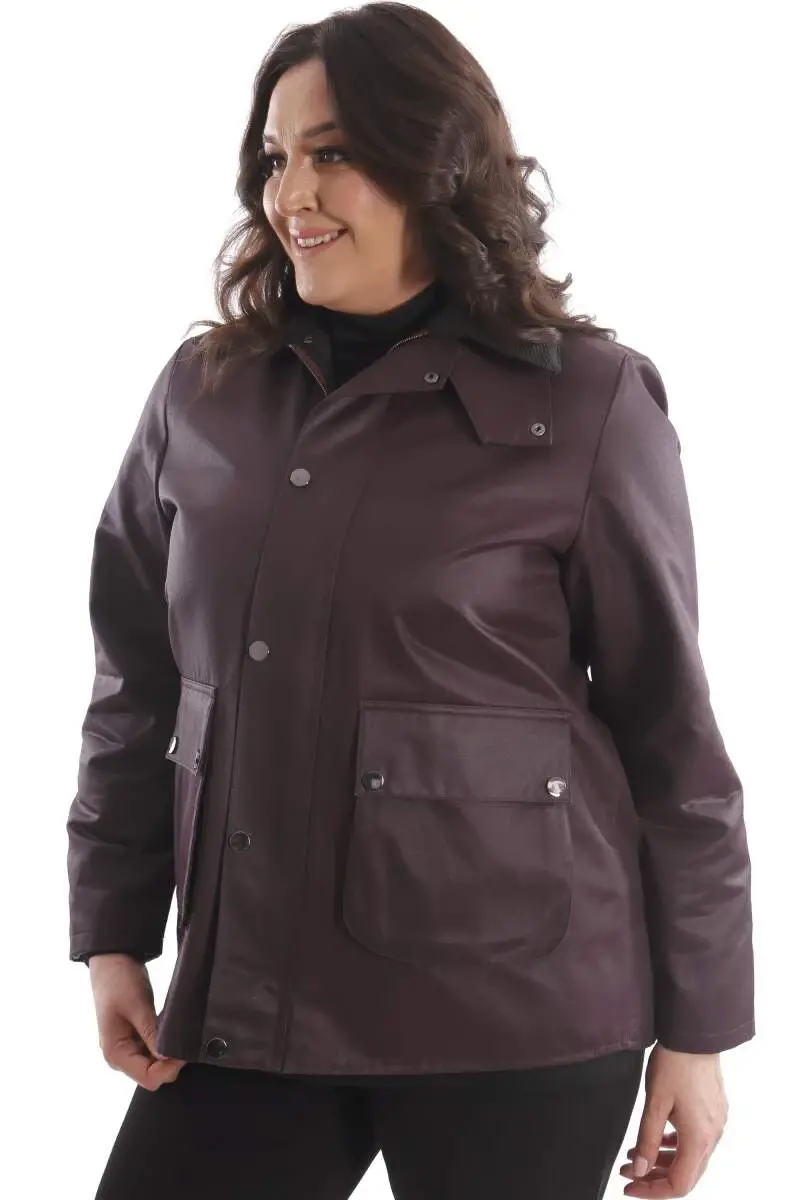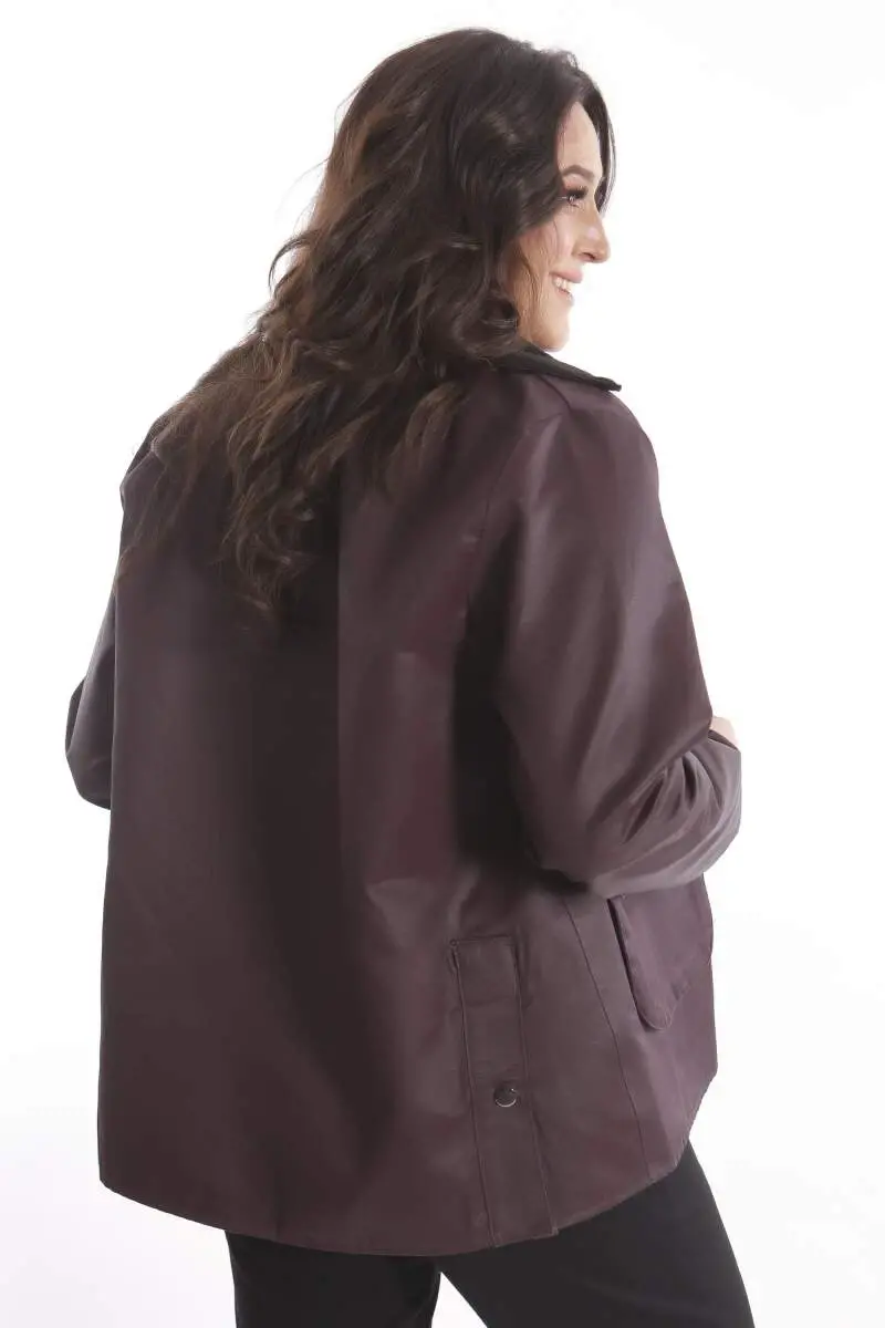 Büyük Beden Kadife Yakalı Çıt Çıt Düğme Detaylı Bordo Kaban