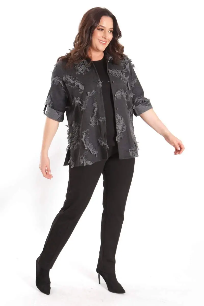 Büyük Beden Kendinden Desenli Siyah GömlekÜrün Özellikleri: Hafif ve yumuşak dokuya sahipRahat form düz kesimDesenli Kumaşı ile şık bir görünümKalça altı boyErkek yakaÜrün Açıklaması: Dokuma malzemeden üretilen, yumuşak dokusu ile dikkat çeken siyah desenli gömleğimiz, rahatlığı ile günlük yaşamın ayrılmaz parçası.Desen detayı ile şık bir tasarım.Pantolon ve eteklerinizle rahatlıkla kombinleye bileceğiniz desenli siyah gömleğimiz sizlerle.Renk: SiyaModazonealzeme: %60 Poliester - %40 PamukManken Ölçüleri: Omuz: 47 cm. - Göğüs: 97 cm. - Basen: 105cm - Bel: 80 cm. - Boy: 1,79 cm. Ürün boyu 70 cm. 'dir.Model Bedeni: 44