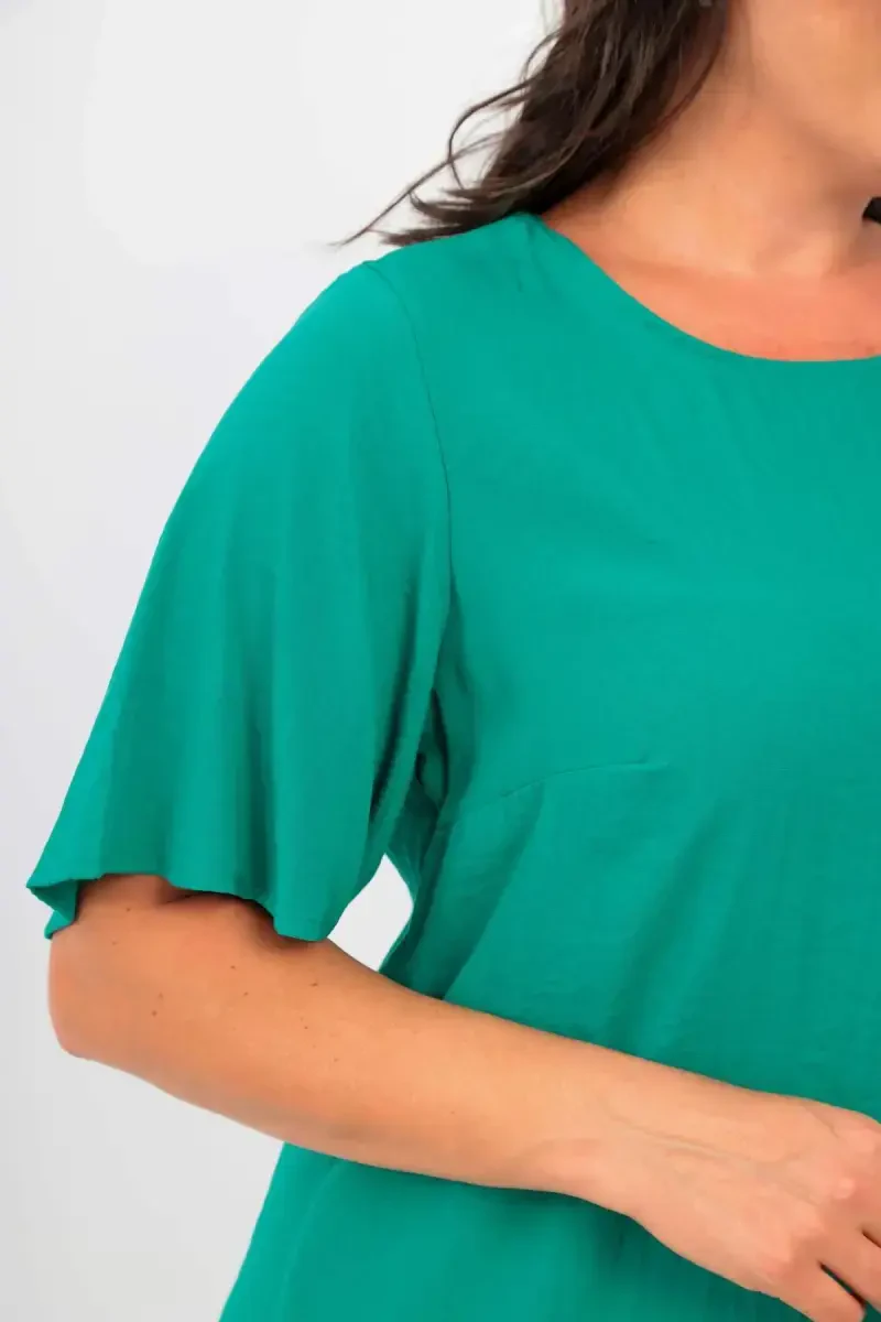 Rahat kalıbı ve esnek kumaşı ile konforlu ve hafif bir elbise. Bisiklet yaka ve kısa kol tasarımıyla günlük kullanım için uygundur. Pamuk karışımlı özel dokusu özel günlerinizde veya iş saatlerinizde şıklığınızı tamamlayacak. Midi boyu ve sade tasarımı ile hem güçlü hem de feminen bir etki yaratabilirsiniz. Yeşil rengi ve %100 Polyester malzemesi ile uzun süreli kullanım için dayanıklıdır.