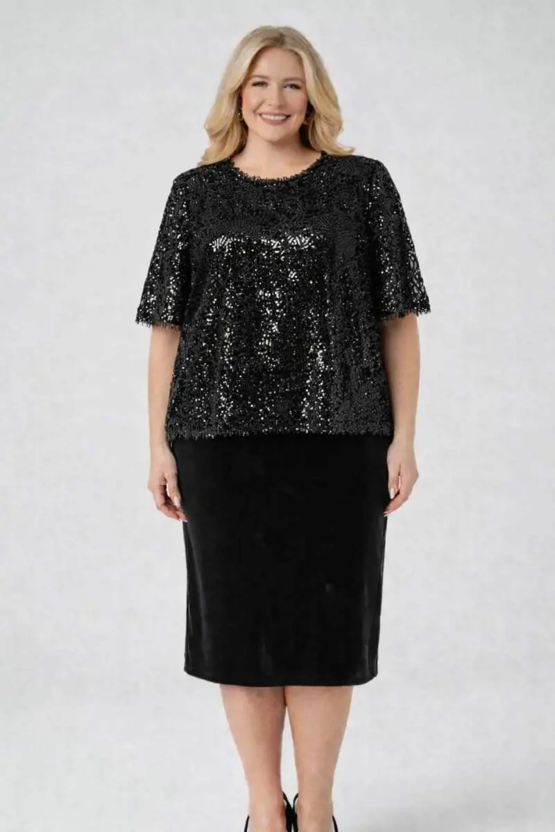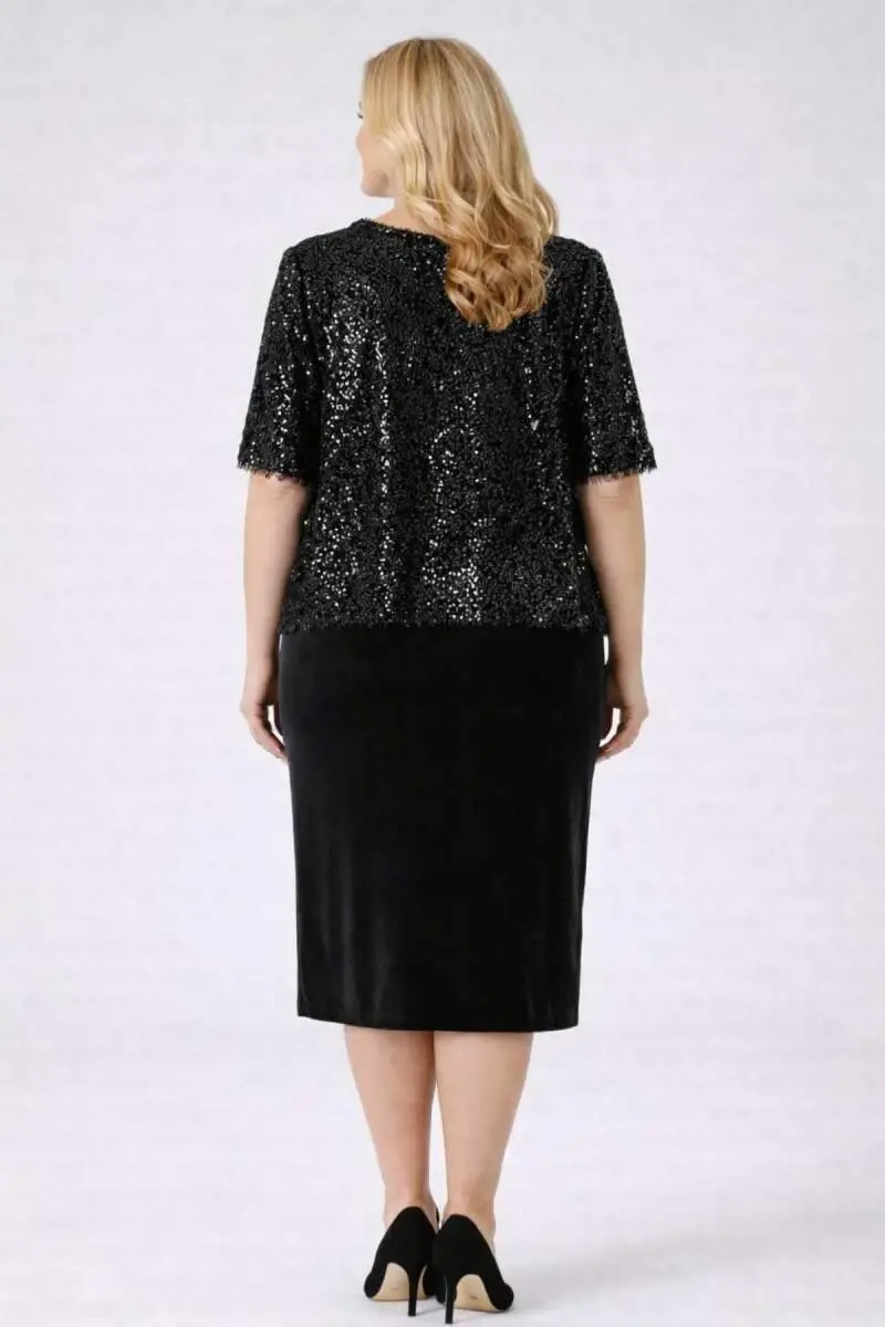 Büyük Beden Kısa Midi Elbise ve Üzeri Dökümlü Bluz 2’li Abiye Takım ND4025