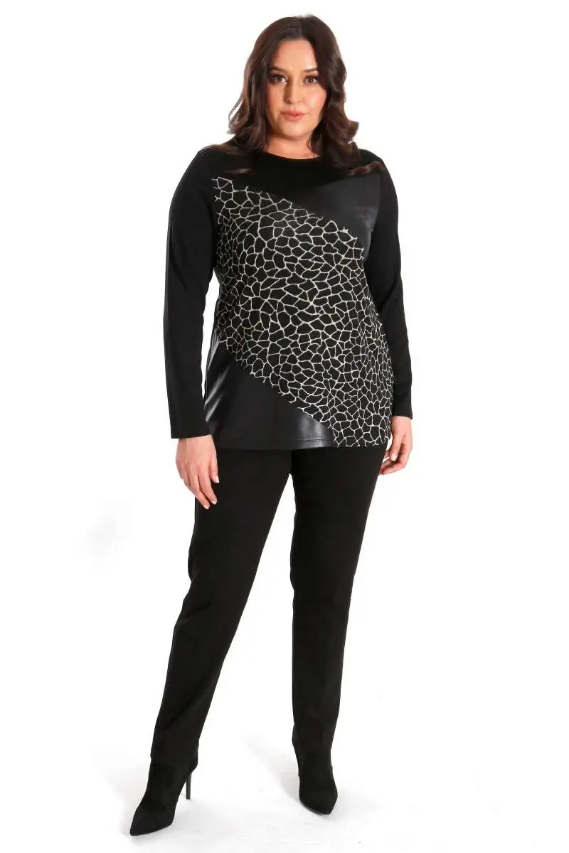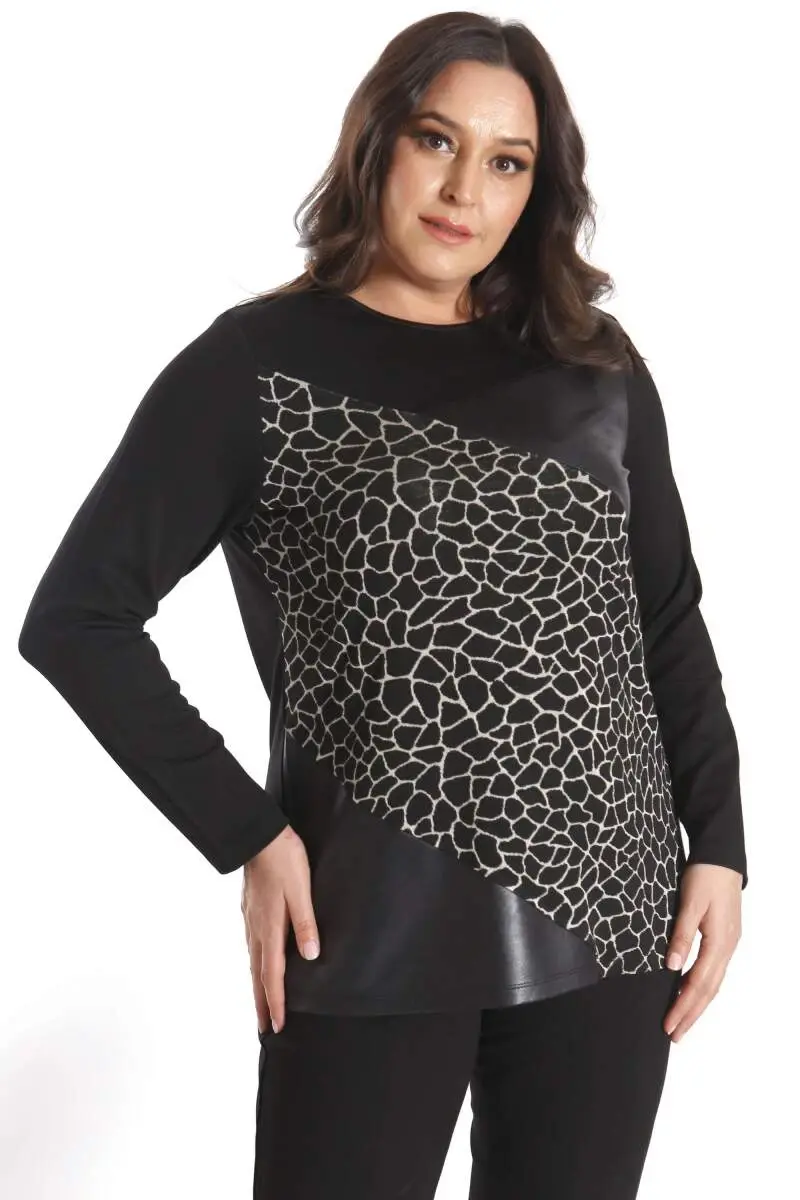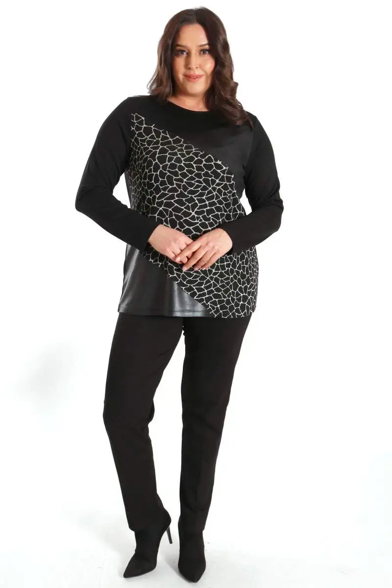 Büyük Beden Ön Parçalı Deri Garnili Siyah BluzÜrün Özellikleri: Rahat kalıp ile şık görünümDeri detaylarMuhteşem Geçiş DesenliKalça altı boyÜrün Açıklaması: Üzerinde özenle oluşturulmuş deri detayları ile zarif görünümünü sergileyecektir Tarzınızı desteklemeye yardımcı olan ürün farklı stili ile her ortamda dikkat çekmeyi başarıyor. Hem günlük hem de özel anlarınızda gözalıcı stili ile her ortamda dikkat çekmenizi sağlayacak.Etek ve pantolonlarınızla rahatca kombinleye bileceğiniz estetik ve göz kamaştırıcı taş detaylı uzun kol bluz.Renk: SiyaModazonealzeme: %65 VİSKOZ - %30 POLİESTER - %5 ELASTANManken Ölçüleri: Omuz 47 cm. - Göğüs 97 cm. - Basen 105 cm. - Bel 82 cm. - Boy 1,79 cm. Ürünün boyu 70 cm. 'dir.Manken bedeni ise 44 beden'dir.Renk ve beden'e göre 1-2 cm. oynamalar olabilir.