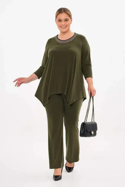 Büyük Beden Pantolon Tunik 2' li Battal Abiye Takım KL5001 Siyah