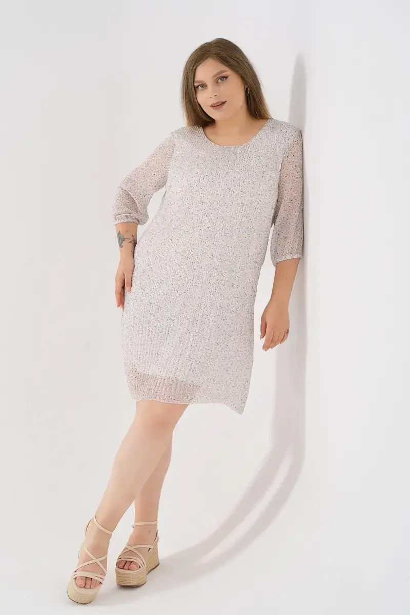 Our Plus Size Pleated Chiffon Dress - Floral model is an option that combines elegance and comfort, and will complement your style on your special days and in daily use. Its light and flowing chiffon fabric offers a cool use even in hot weather, while pleated details add movement and dynamism to the dress. The floral pattern allows you to achieve a feminine and lively look. The plus size cut aims to adapt to every body type and make you feel free and comfortable. Our dress offers a long-lasting use with its carefully selected fabric and sewing quality. With this dress, which will be an indispensable part of your wardrobe, you will attract attention in every environment. You can best reflect your style with this stylish dress that will accompany you from special invitations to casual meetings. This special design offered with SHAHIQA quality is an ideal choice for women who seek both comfort and elegance. Remember, this product is on sale at a campaign price and our stocks are limited. Do not miss this opportunity, renew your style!