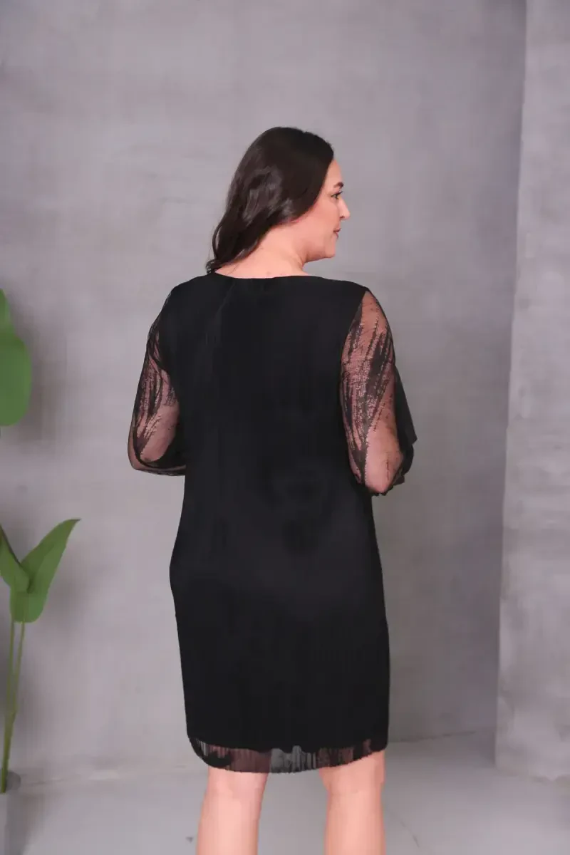 Почувствуйте элегантность и комфорт в плиссированном шифоновом платье больших размеров. Этот эксклюзивный дизайн, благодаря своему удобному крою и стильным деталям, позволит вам блистать в любой обстановке. Легкая и струящаяся шифоновая ткань позволит вам чувствовать себя комфортно в течение всего дня, сохраняя при этом ваш стиль от особых случаев до повседневной носки. Благодаря подкладке не просвечивает и позволяет уверенно двигаться в течение всего дня. Длинные рукава помогут вам дополнить свой образ в прохладную погоду, а эластичные манжеты обеспечат комфорт. V-образный вырез добавит элегантности любителям декольте, а плиссированная юбка придаст платью движение и динамизм. Крой больших размеров идеально облегает фигуру и обеспечивает уверенную осанку. Черная тюлевая деталь придает платью изысканный вид, позволяя вам выделиться в любой обстановке. Создайте ли вы элегантный образ с туфлями на каблуках или более непринужденный стиль с сандалиями, это платье станет незаменимым в вашем гардеробе. Ткань из 100% полиэстера проста в уходе, что обеспечивает практичность в использовании, а долговечность позволит вам носить его долгие годы. Выберите плиссированное шифоновое платье больших размеров, чтобы почувствовать себя особенной и красивой. Несите благородство черного тюля и очаровывайте своей элегантностью на каждом шагу.