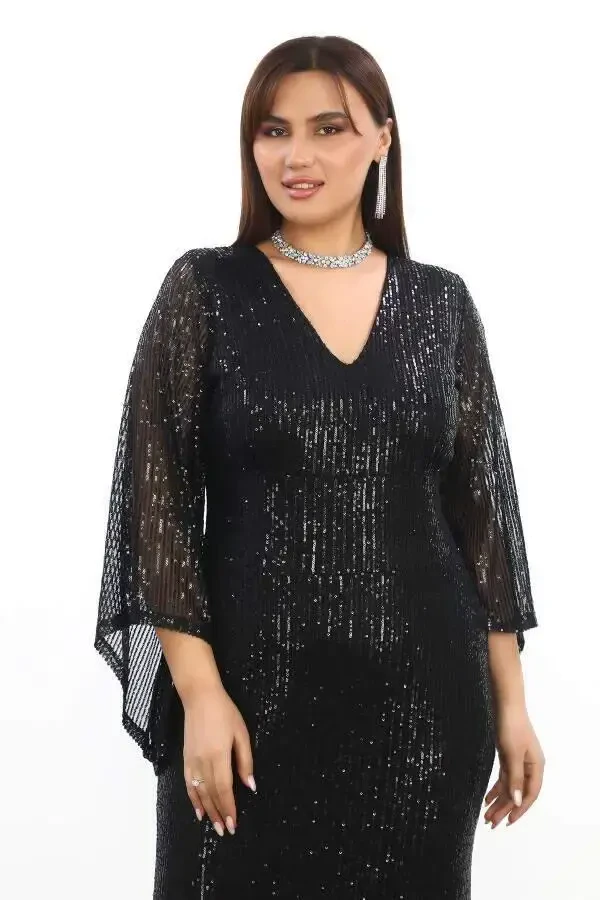 Şık ve Göz Alıcı: Büyük Beden Pul Payet Işıltılı Abiye Elbise