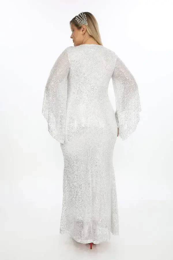Вечернее платье большого размера с пайетками KL3100 Серебристого цвета