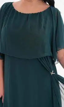 Büyük Beden Şifon Esnek Likralı Uzun Abiye KL3114 Elbise Yeşil