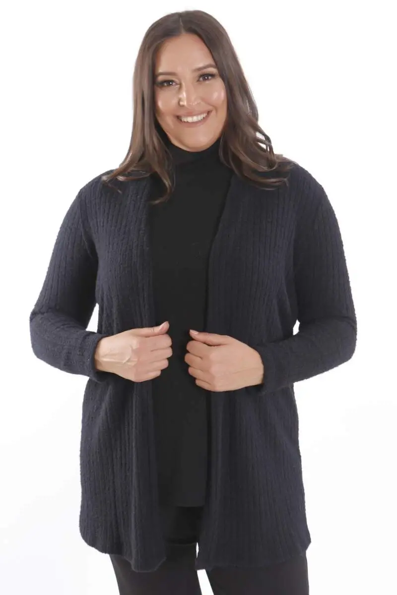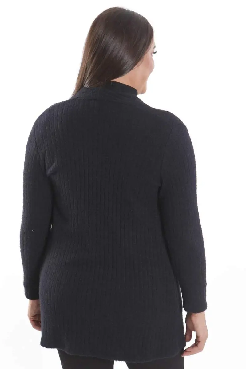 Büyük Beden Siyah Kendinden Kıvrımlı Yumoş Hırka Ürün Özellikleri: Salaş ve rahat bir görünüm Rahat kalıbı ile konforlu kullanım Yumoş Kumaşı ile şık bir görünüm Diz üstü boy Ürün Açıklaması: Büyük Beden Siyah Kendinden Kıvrımlı Yumoş Hırka, tasarımda kullandığı yumuşak doku ile uzun süreli kullanımda konfor sunuyor. Kıyafetlerinizi ve şıklığınızı olumsuz hava şartlarında korurken aynı zamanda tamamlayan özel parçalardan birisi olan hırka modeli sahip olduğu rahat kalıbı ile şık bir görünüm sunuyor. Renk: Siyah Malzeme: %50 POLİAMİD - %35 POLYESTER - %15 VİSKOZ Manken Ölçüleri: Omuz: 47 cm. - Göğüs: 97 cm. - Basen: 105cm - Bel: 80 cm. - Boy: 1,80 cm. Ürün boyu 78 cm. 'dir. Model Bedeni: 44