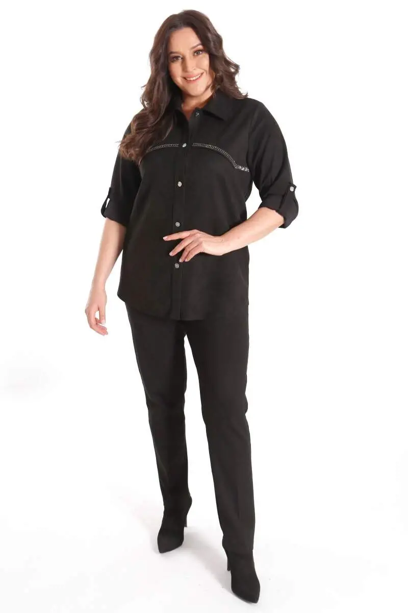 Büyük Beden Taş Baskılı Süet Siyah GömlekÜrün Özellikleri: Hafif ve yumuşak dokuya sahipRahat form düz kesimTaş detayı ile şık tasarımKalça altı boyErkek yakaÜrün Açıklaması: Süet malzemeden üretilen, yumuşak dokusu ile dikkat çeken süet gömlek, rahatlığı ile günlük yaşamın ayrılmaz parçası.Süs taş detayı ile şık bir tasarım.Pantolon ve eteklerinizle rahatlıkla kombinleye bileceğiniz taş detaylı vizon süet gömlek.Renk: SiyaModazonealzeme: %95 Poliester %5 ElastanManken Ölçüleri: Omuz: 47 cm. - Göğüs: 97 cm. - Basen: 105cm - Bel: 80 cm. - Boy: 1,79 cm. Ürün boyu 70 cm. 'dir.Model Bedeni: 44