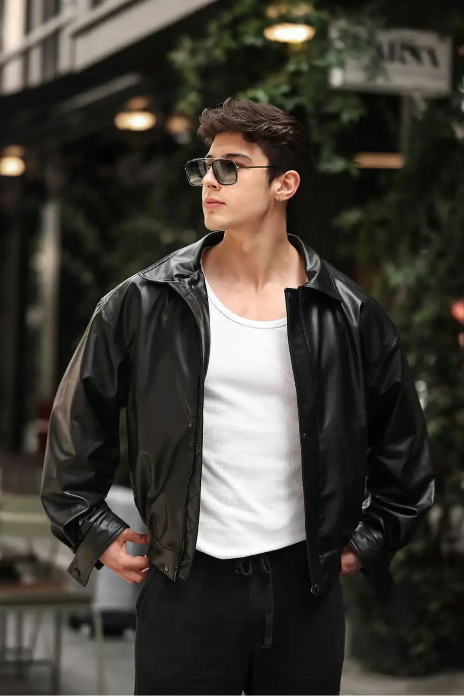 Предложения по сочетанию мужской кожаной куртки оверсайз винтаж черного цвета:
