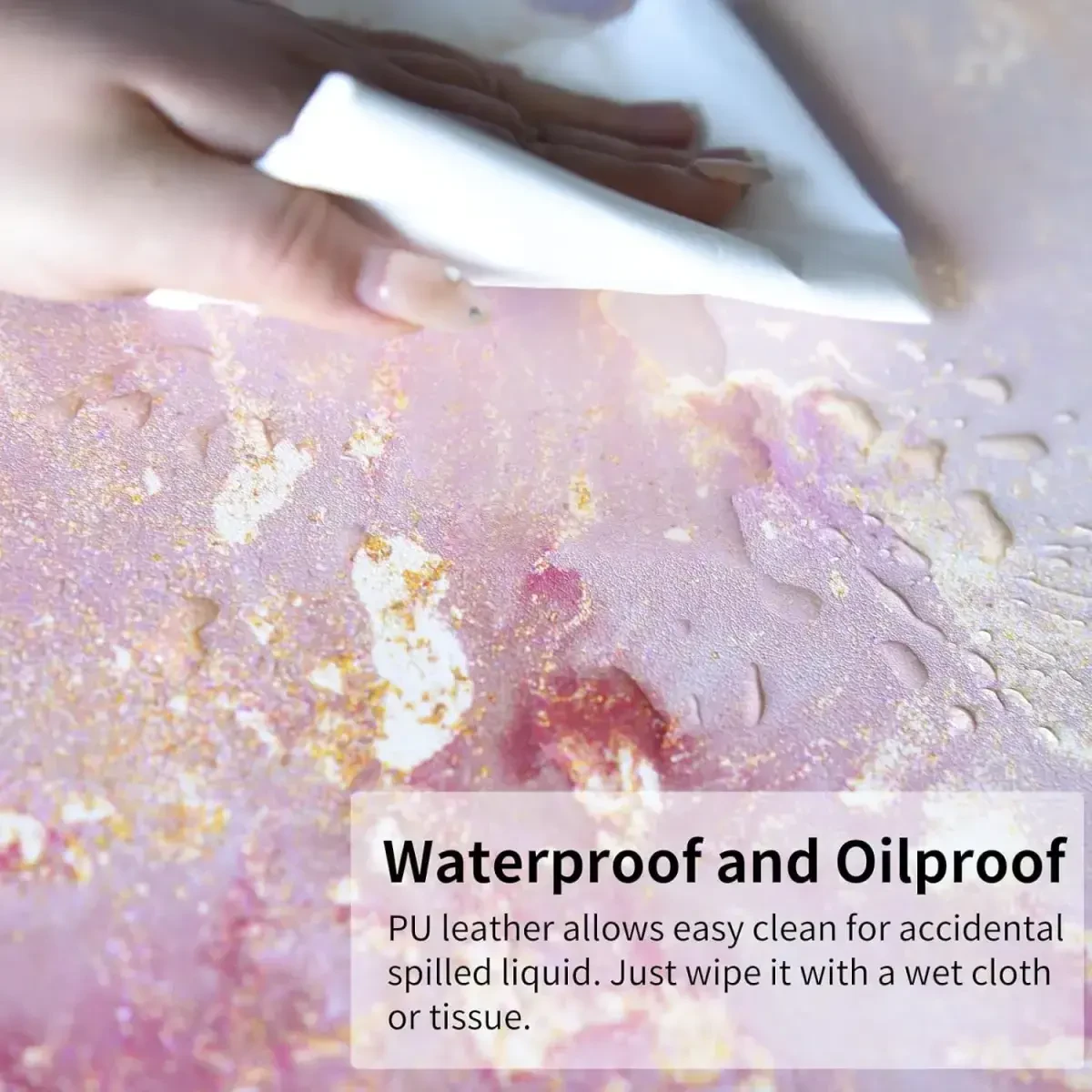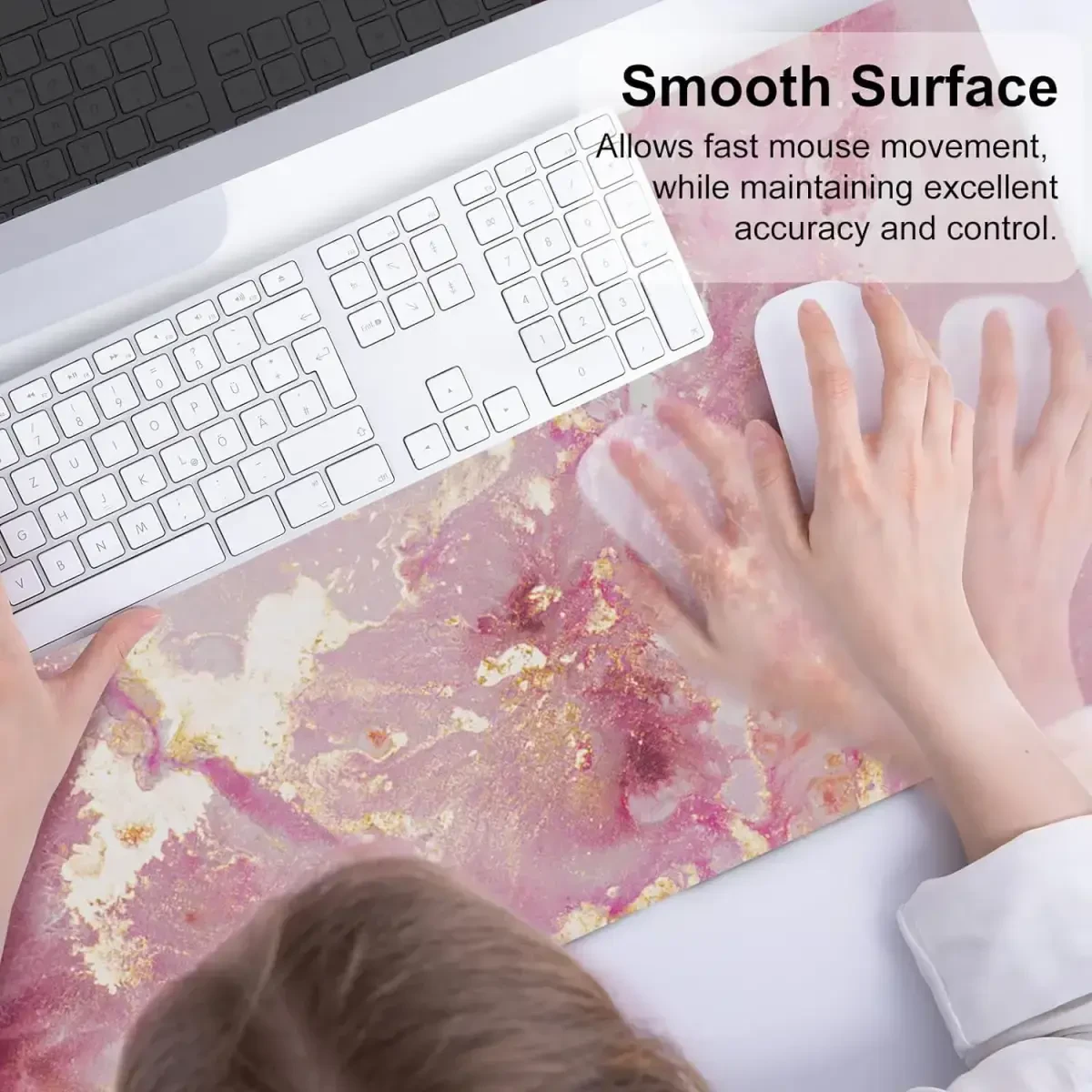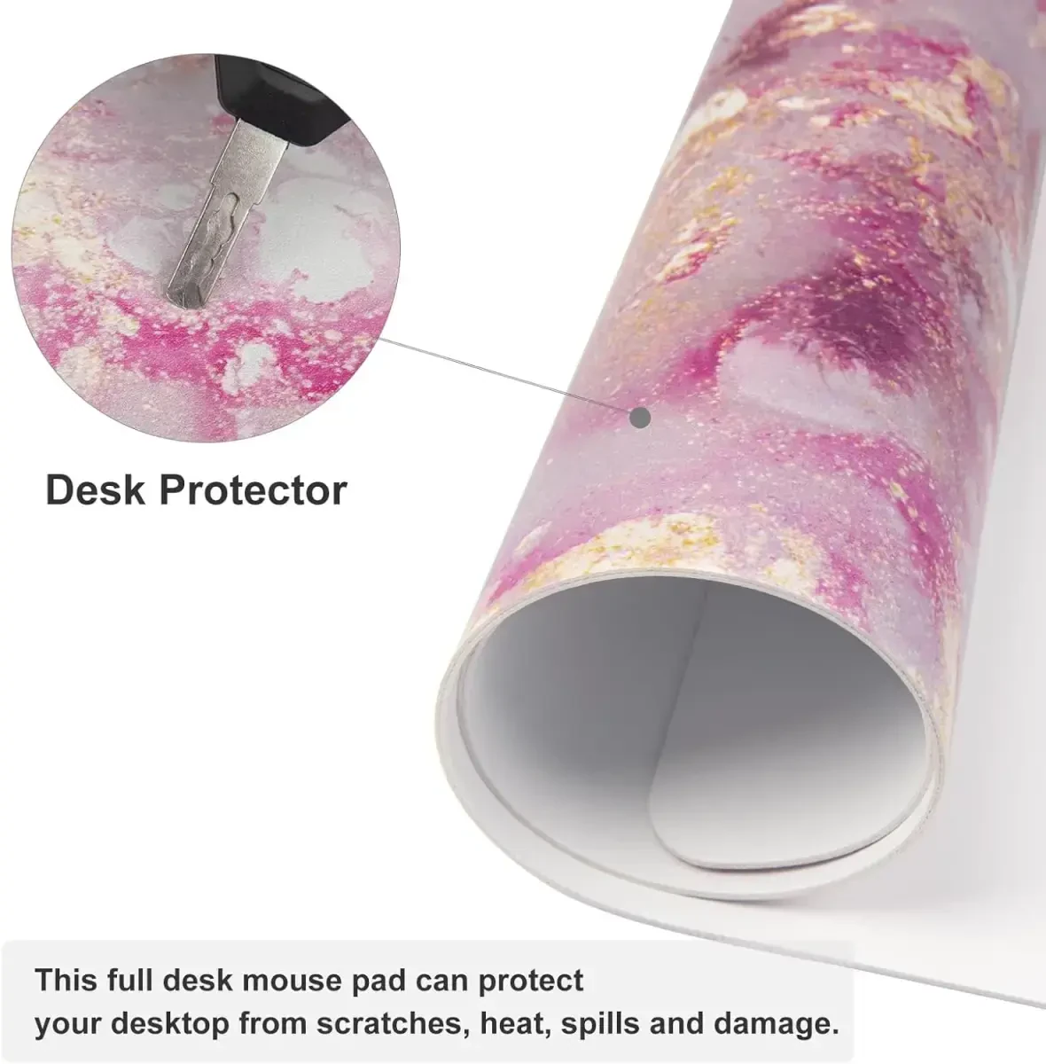 Large Mouse Pad, Cute Pink Desk Mat for Desktop, Women Girls PU Leather Waterproof Gaming, Rose Gold Marble Computer PC Laptop Protector Writing Pads for School Office Home 31.5" x 15.7"-PINK