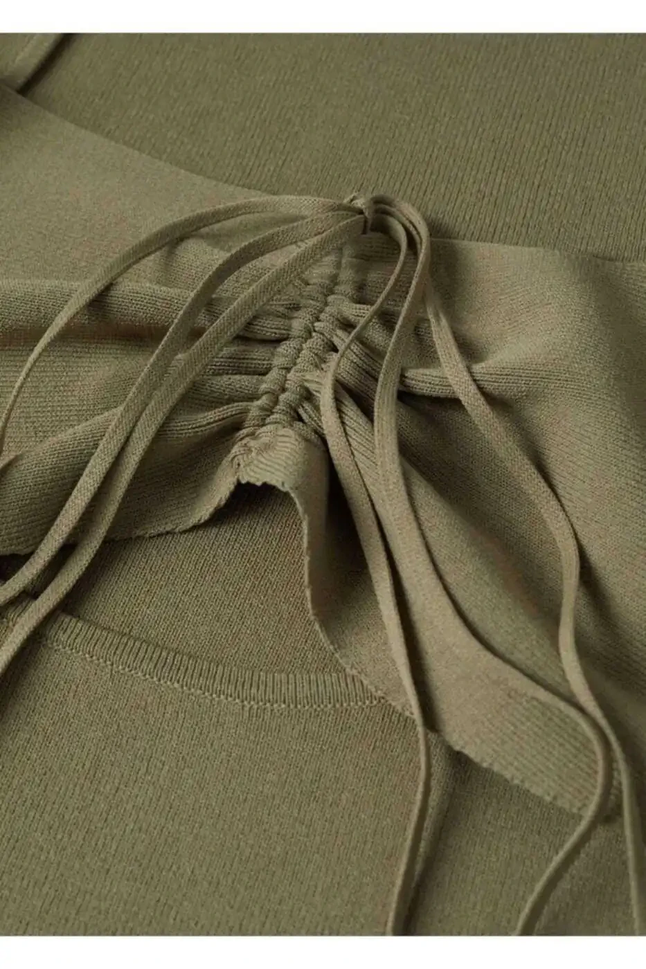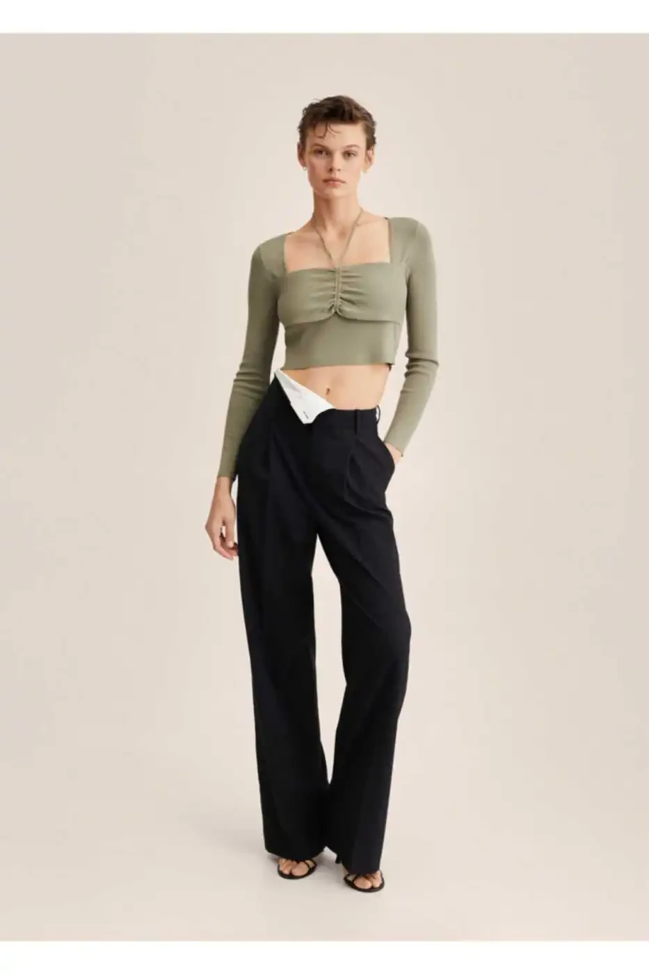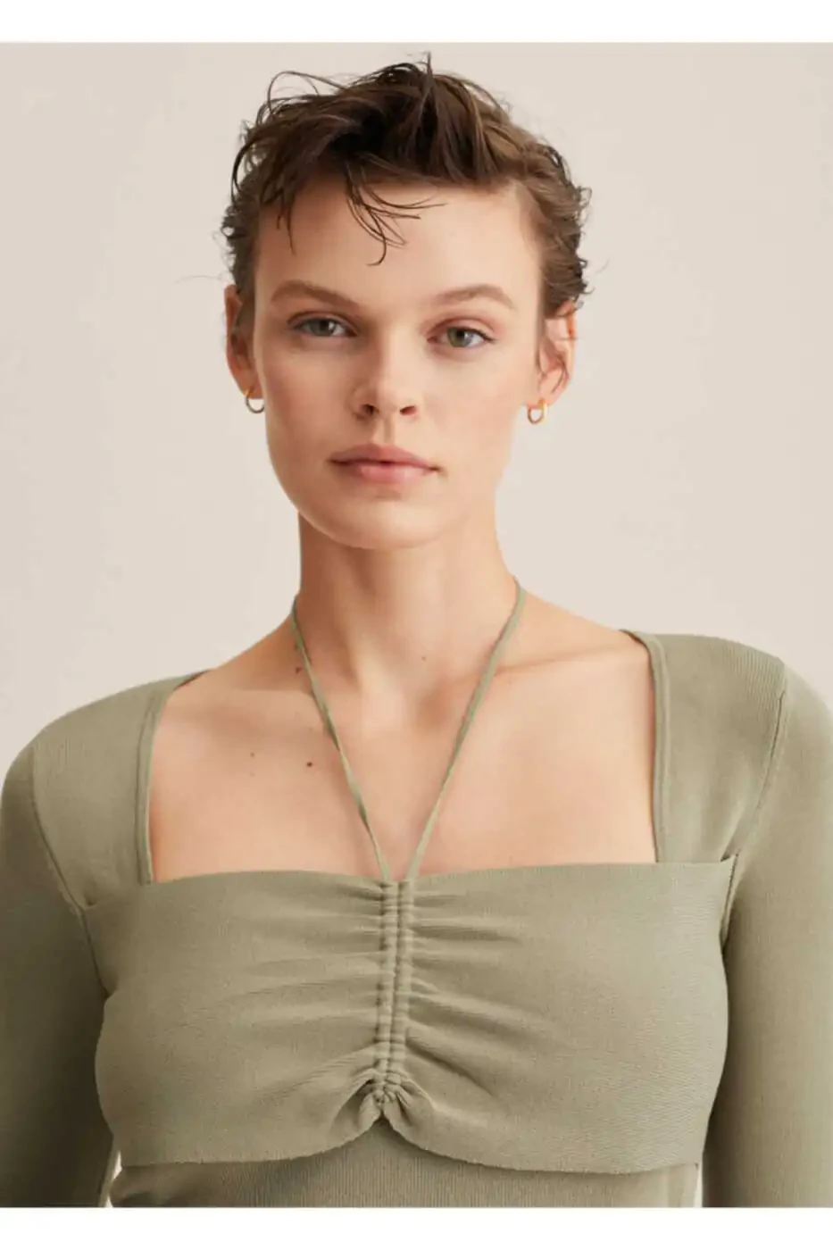 Büzgü detaylı kazak, modern ve şık tarzınız için mükemmel bir seçimdir. Boyundan bağlamalı yaka tasarımı ile asimetrik bir siluet oluşturan bu kazak, dikkat çekici bir stil sunar. Uzun kollu yapısı soğuk havalarda ekstra koruma sağlarken, standart boy kesimi rahat bir kullanım imkanı tanır.
