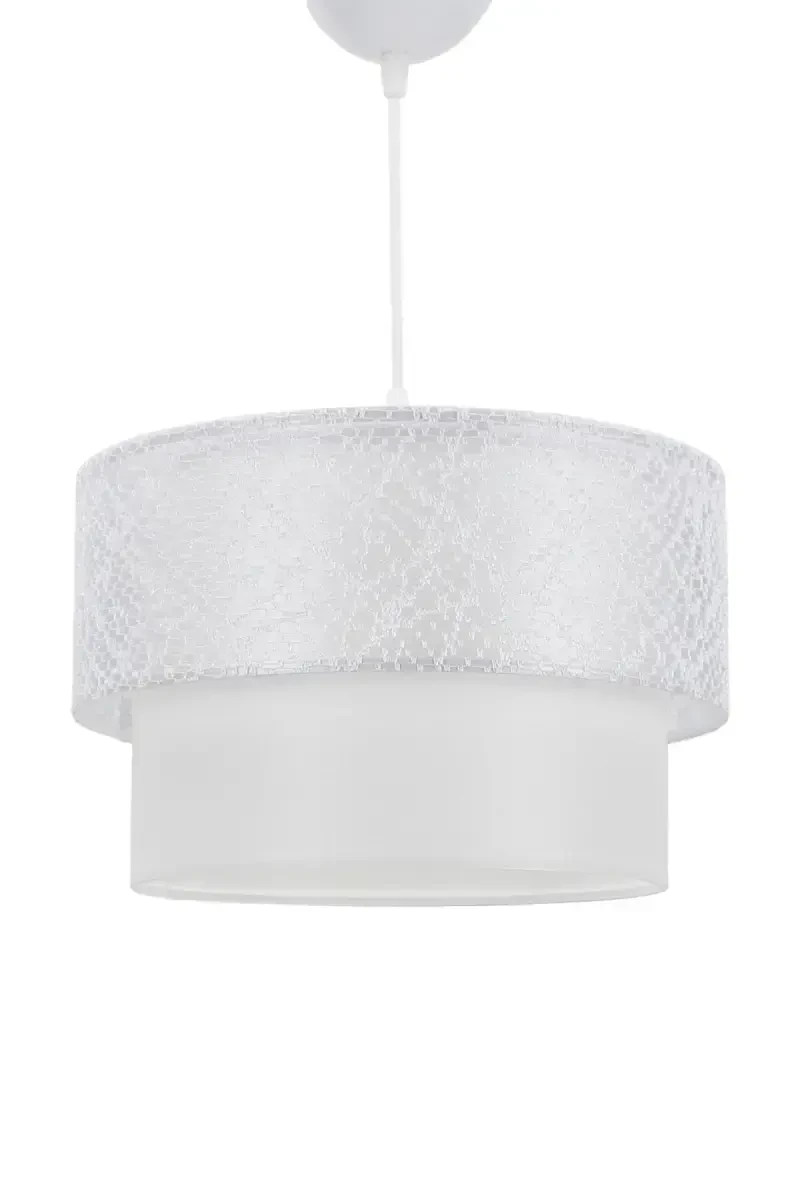 White lace detailed cake model chandelier. It has an E27 socket type and can be used with a maximum of 60W bulb. The product has a diameter of 30 cm. It has a CE certificate.Product DescriptionThe Cake Pendant Chandelier with Lace White-White, which will add a warm and inviting atmosphere to your homes, offers a unique touch to your living spaces with its elegant design and eye-catching details. This chandelier, which is ideal for children's rooms, youth rooms and kitchens in particular, easily adapts to all kinds of decorations with its romantic and stylish appearance. The purity of white and the elegance of lace details come together to add a bright and spacious atmosphere to your room, while also attracting attention as a decorative object. The cake-shaped design gives the chandelier a fun and different look, while the lace embroidery completes its elegance. This chandelier stands out as an aesthetic detail that changes the atmosphere of your living spaces, beyond being just a lighting tool. Produced from high-quality materials, the Cake Pendant Chandelier is a product that you can use safely for many years with its long-lasting and durable structure. Thanks to its easy installation, you can complete the installation in a short time and start using it immediately. Thanks to the E27 socket type, you can adjust the lighting of your room according to your taste by using bulbs of different powers and colors. Whether you prefer a yellow light bulb to create a warm and dim ambiance, or use a white light bulb for a brighter and more spacious environment, the Cake Pendant Chandelier will meet all your needs. This chandelier, which is ideal for children's rooms, is made of materials that do not threaten your children's health with its safe and robust structure. You can use this chandelier with peace of mind, and it will add joy and warmth to your children's room. The Cake Pendant Chandelier with Lace White-White is an ideal option not only for your homes but also for commercial venues such as cafes, restaurants and boutiques. It is a product that businesses that especially like romantic and vintage styles can choose to add a different atmosphere to their venues. You can use this chandelier to offer your customers an unforgettable experience and enrich the atmosphere of your venue. With its stylish design and high-quality construction, it will add value to your venue and gain the appreciation of your customers. Make your living spaces and commercial venues more enjoyable and aesthetic with the Cake Pendant Chandelier. This chandelier is not just a lighting tool, but also an expression of a lifestyle.Product Features* Color: White* Lace Detailed Design* Model: Cake* Socket Type: E27* Maximum Bulb Power: 60W* Diameter: 30 cm* CE Certificate* Easy Installation* Long-lasting and Durable Structure* Ideal for Children's Rooms* Romantic and Stylish AppearanceAdditional InformationBulb is not included in the product. The chandelier can be cleaned with a damp cloth. Avoid using chemical cleaners. Make sure the electrical connection is off during product installation. The chandelier is suitable for indoor use.