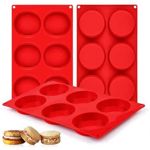 CAKETIME Muffin Top Pan, Silicone Egg Molds for Breakfast Sandwiches 3 Inch Round Silicone Egg Pan for Baking English muffins, Whoopie Pies, Corn Bread, Egg bites, Tarts 3 Pack