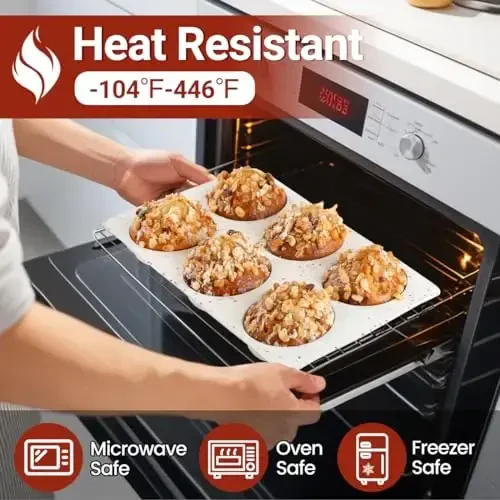 CAKETIME Muffin Top Pan bilan oshxonada ijodkorligingizni namoyish eting! Ushbu silikon tuxum qoliplari nonushta sendvichlaridan tortib shirin gazaklargacha bo'lgan ko'plab mazali retseptlar uchun ajoyib yordamchidir. Diametri 3 dyuymli dumaloq dizayni tufayli siz inglizcha kekslar, whoopie piroglari, makkajo'xori noni, kichik gazaklar va tartlar kabi turli xil lazzatlarni tayyorlashingiz mumkin. Confetti ranglari bilan oshxonangizga quvonch bag'ishlaydigan ushbu 2 qismli to'plam ham amaliy, ham qiziqarli foydalanishni taklif etadi. CAKETIME Muffin Top Pan bilan pechingizga yangi nafas olib keling va yaqinlaringizni hayratga soladigan lazzatlarni yarating. Yuqori sifatli silikon materialdan tayyorlangan ushbu qoliplar ovqatingiz bilan bevosita aloqa qilishda hech qanday muammo tug'dirmaydi. Har bir qolip diametri 3 dyuym va chuqurligi 0,7 dyuym, bu sizga ideal o'lchamdagi kek tepalari va boshqa gazaklarni tayyorlash imkonini beradi. To'plamga kiritilgan 2 dona qolip tufayli siz bir vaqtning o'zida ko'proq lazzatlarni pishirishingiz, vaqt va energiyani tejashingiz mumkin. An'anaviy metall qoliplarga qaraganda bardoshliroq va zangga chidamli bo'lgan ushbu silikon qoliplar uzoq muddatli foydalanishni ta'minlaydi. CAKETIME Muffin Top Pan-ning eng muhim xususiyatlaridan biri bu yopishmaydigan sirtidir. Silliq yuzasi tufayli ovqatlaringiz osongina chiqadi va qoliplar osongina tozalanadi. Ushbu xususiyat oshxonada o'tkazgan vaqtingizni yanada yoqimli qiladi va tozalash tashvishini yo'q qiladi. Bundan tashqari, ushbu qoliplardan pechda, mikroto'lqinli pechda, idish yuvish mashinasida, muzlatgichda va muzlatgichda bemalol foydalanish mumkin. Keng harorat oralig'i (-104 dan 446 daraja Fahrenheitgacha) ularni turli xil retseptlar uchun mos qiladi. Faqat kek tepalari uchun emas, balki whoopie piroglari, tuxumli kekslar, sendvichlar, tortlar, tartlar, nonlar, cheesecakelar, gamburger nonlari, kremlar va sovunlar kabi turli xil lazzatlar va mahsulotlarni tayyorlash uchun ham ideal. Ko'p qirrali ishlatilishi tufayli siz oshxonadagi ijodkorligingizni cheklamasdan turli xil retseptlarni sinab ko'rishingiz mumkin. Silikon materialdan tayyorlanganligi sababli u moslashuvchan, shuning uchun qolipni to'ldirishdan oldin uni pechene varag'iga qo'yib, qo'llab-quvvatlashingiz tavsiya etiladi. Shu tarzda siz qolipning shakli buzilmasdan mukammal natijalarga erishishingiz mumkin. CAKETIME Muffin Top Pan bilan sog'lom va mazali gazaklarni tayyorlash endi juda oson!