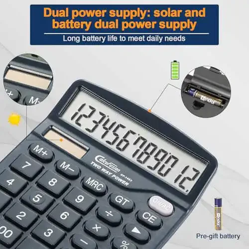 12 Digits Large Display LCD: The large 12-digit LCD display offers clear and easy-to-read readouts, allowing you to perform your calculations effortlessly.