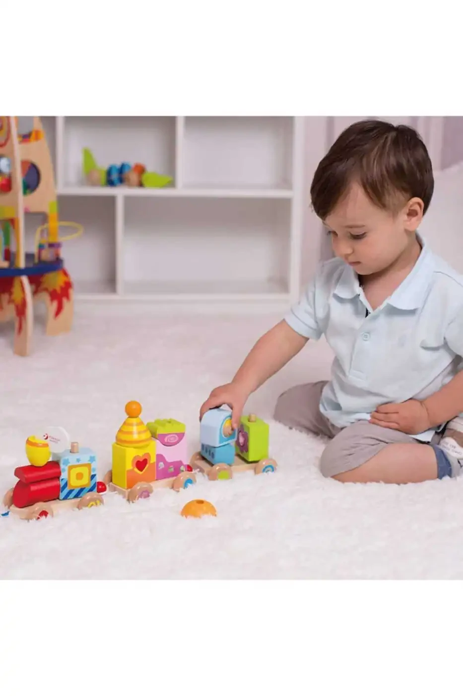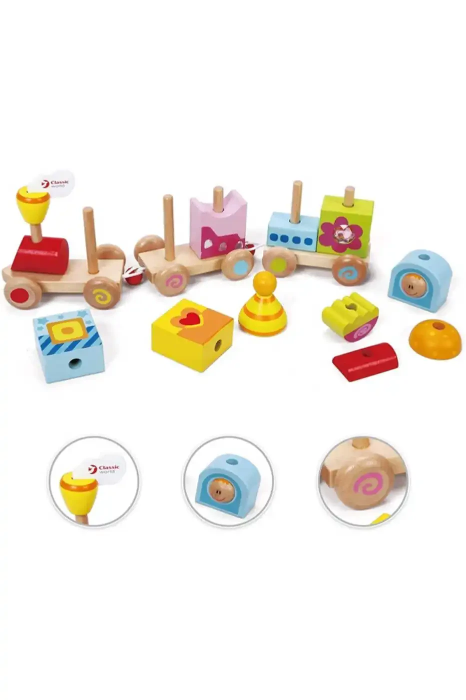 Calimeratoys Yog'och Tortib Yuradigan Poezd Rangli Bloklari Xususiyatlari: