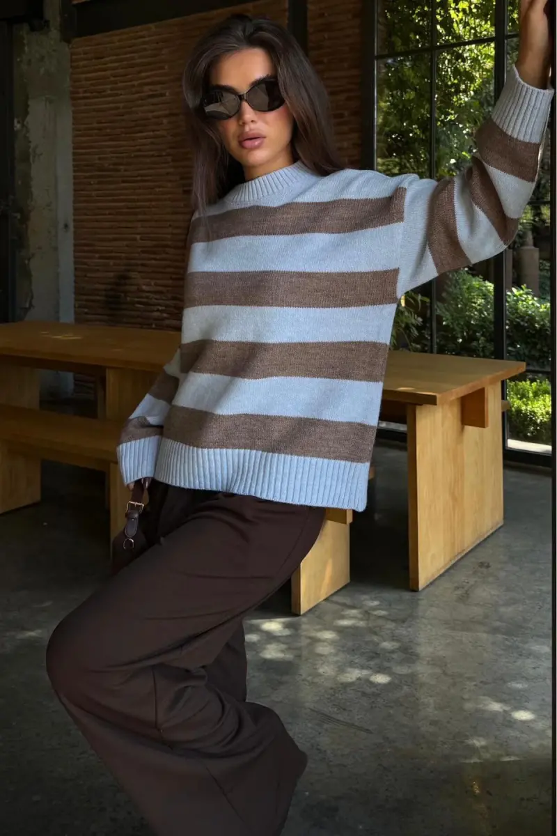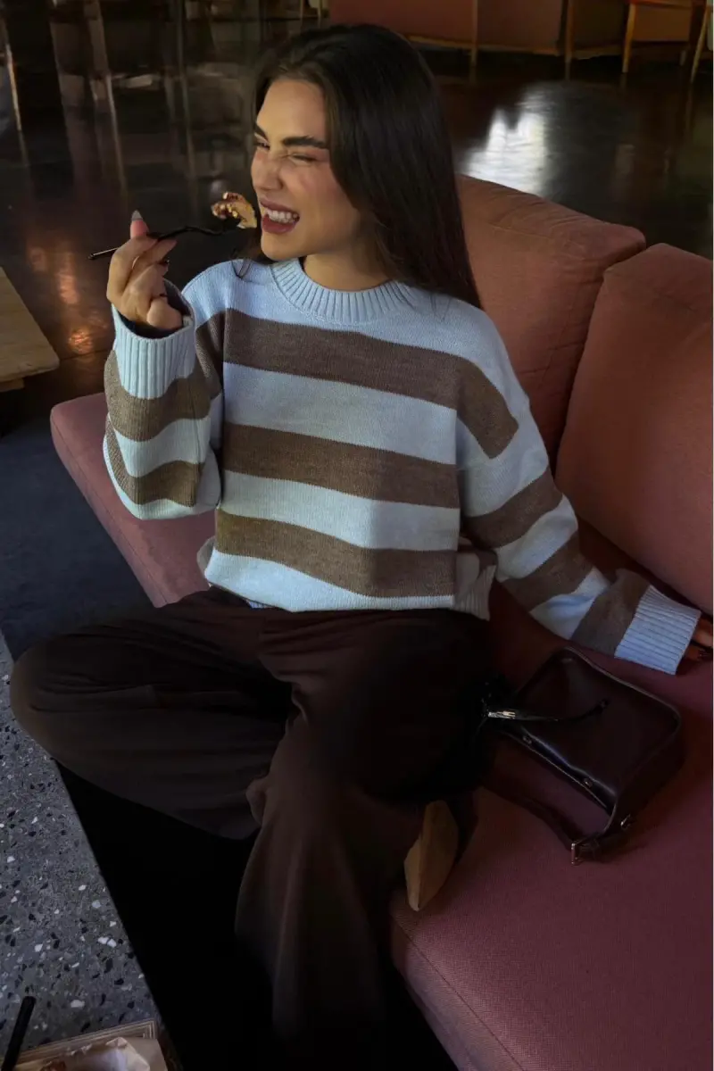 Camel Bisiklet Yaka Çizgili Oversize Triko Kazak MG1972-Camel