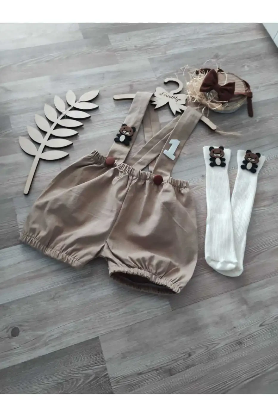 Camel Renk Salopet Ayıcık Konsepti Erkek Bebek Pasta Patlatma Kostümü, minik bebeğinizin doğum günü partisi veya özel günleri için mükemmel bir seçimdir. Bu şık ve sevimli kıyafet, bebeğinizin fotoğraf çekimlerinde ve anılarında unutulmaz bir iz bırakacak. FERİATÖLYE tarafından özenle tasarlanıp üretilen bu kostüm, bebeğinizin konforunu ön planda tutarak şıklığı ve eğlenceyi bir araya getiriyor. Doğal ve yumuşak pamuklu kumaşı sayesinde bebeğinizin hassas cildine zarar vermez, gün boyu rahat etmesini sağlar. Kostüm, sevimli bir ayıcık figürüne sahip camel renkli salopet, uyumlu bir çorap ve şık bir papyondan oluşmaktadır. Salopetin arka kısmında bulunan kademeli çıtçıtlar sayesinde kolayca giydirilip çıkarılabilir, bu da ebeveynler için büyük bir kolaylık sağlar. Pasta patlatma gibi eğlenceli aktivitelerde bebeğinizin özgürce hareket etmesini sağlayan kısa şortlu tasarımı, hem şık hem de pratiktir. Ürünün üzerindeki ayıcık figürleri broş iğnelidir, istenildiğinde çıkarılabilir ve 30 derecede yıkanabilir, böylece temizliği de oldukça kolaydır. Bu konsept kostüm, sadece şık bir görünüm sunmakla kalmaz, aynı zamanda bebeğinizin cildine dost malzemelerden üretilmiştir. Doğum günü partileri, özel kutlamalar ve fotoğraf çekimleri için ideal olan bu kıyafet, bebeğinizin tarzını yansıtacak ve onu diğerlerinden farklı kılacaktır. FERİATÖLYE kalitesiyle üretilen bu özel tasarım, bebeğinizin en özel anlarında ona eşlik edecek ve unutulmaz hatıralar biriktirmenize yardımcı olacaktır. Bebeğinizin rahatlığı ve şıklığı için özenle tasarlanan bu kostümü tercih ederek, hem bebeğinizi mutlu edebilir hem de özel anlarınızı daha da anlamlı kılabilirsiniz.