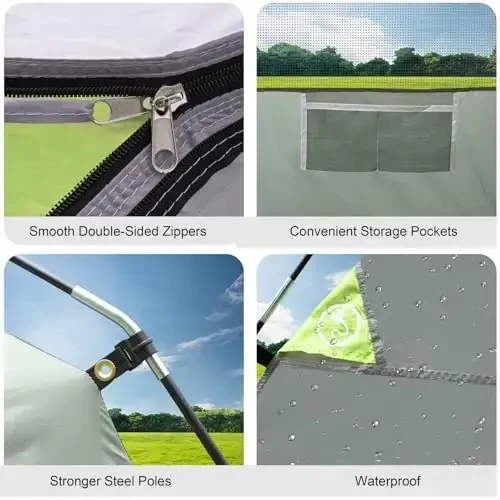 - Hızlı Kurulum: Çadırınızı kuru ve düzenli tutmak için yükseltilmiş çift yönlü fermuarlar, dahili saklama cepleri içerir. Kurulum, iki kişiyle sadece 5 dakika sürer; hem yeni hem de deneyimli kampçılar için harika.