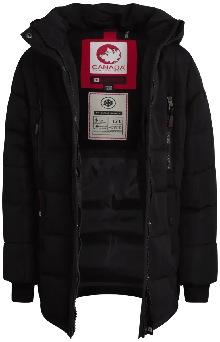 CANADA WEATHER GEAR is a brand known for its high-quality outerwear products. This jacket is designed to keep your daughter warm, dry, and stylish during the winter months. The product offers suitable size options for girls in the specified age range. Check the product label for detailed washing instructions. It is manufactured to the highest standards for your daughter's comfort and safety.