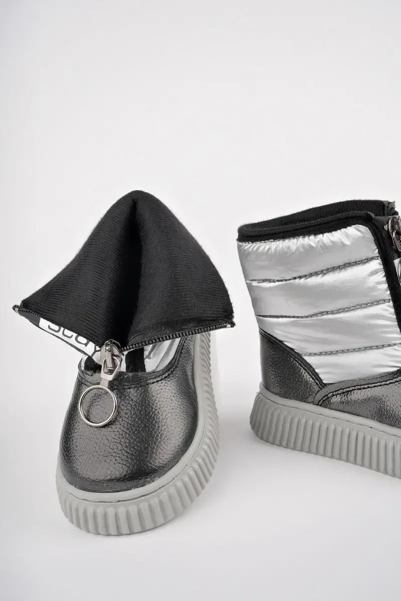 Candy Гарантированные детские удобные ботинки для дождя и снега с молнией спереди и меховой подкладкой - серебро - идеальный вариант обуви, который понадобится вашему ребенку зимой. Позволяет ему приятно проводить время на улице в холодную погоду, защищая здоровье его ног. Внутренняя часть ботинка покрыта мягким мехом. Благодаря этому ножки вашего ребенка остаются в тепле и не подвергаются воздействию холода. Мех также создает дополнительный слой комфорта, поддерживая шаги вашего ребенка. Молния спереди позволяет очень легко надевать и снимать ботинок. Эта практичная функция является большим преимуществом, особенно для активных младенцев. Благодаря молнии вы можете быстро надеть ботинок и предотвратить замерзание вашего ребенка. Удобная посадка не ограничивает естественное движение ног вашего ребенка и обеспечивает комфортное использование в течение всего дня. Обеспечивает достаточно места для пальцев ног и устраняет ощущение стеснения. Это особенно важно для здоровья ног младенцев, так как стесненные ноги могут привести к проблемам с развитием. Благодаря водонепроницаемости ножки вашего ребенка остаются сухими в дождливую и снежную погоду. Эта функция повышает комфорт и снижает риск простуды. Внешняя поверхность ботинка изготовлена из водостойкого материала и легко чистится. Это позволяет удобно использовать ботинок. Серебристый цвет делает ботинок стильным и современным. Легко сочетается с любой детской одеждой и дополняет стиль вашего ребенка. Яркость серебристого цвета привлекает внимание вашего ребенка и предлагает ему веселый опыт ношения. Этот ботинок, предлагаемый с гарантией Candy, изготовлен из качественных материалов и долговечен. Благодаря своей прочной конструкции он сопровождает игры и приключения вашего ребенка, не проявляя признаков износа. Этот ботинок является идеальным вариантом для поддержки первых шагов вашего ребенка. Обеспечивая безопасное и комфортное использование, он способствует здоровому развитию вашего ребенка. Вы можете выбрать Candy Гарантированные детские удобные ботинки для дождя и снега с молнией спереди и меховой подкладкой - серебро, чтобы сохранить ножки вашего ребенка в тепле, сухости и комфорте зимой. Этот ботинок является практичным и стильным вариантом и станет незаменимой частью зимнего гардероба вашего ребенка. Этот ботинок, тщательно разработанный для комфорта и здоровья вашего ребенка, является продуктом, который вы можете использовать с уверенностью.