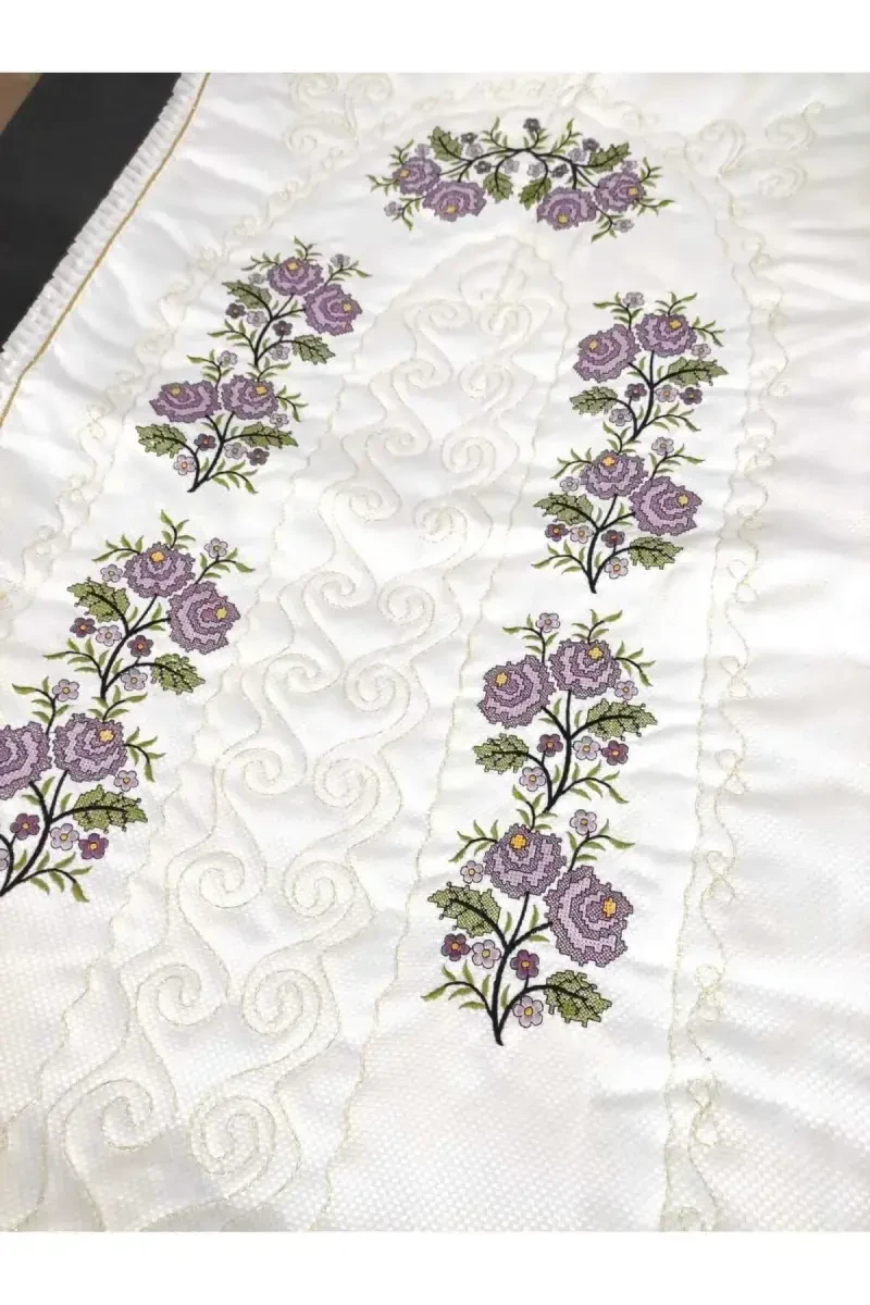 Cross-Stitch Embroidered Etamine Fabric Single Prayer Rug - Purple-M is a carefully designed worship tool where traditional handicrafts meet modern touches. The cross-stitch motifs embroidered on the elegant texture of the etamine fabric add a unique aesthetic to the prayer rug, while aiming to make your worship more peaceful and meaningful. Reflecting the nobility and tranquility of the color purple, this prayer rug will bring elegance and sophistication to the atmosphere of your home. Every detail of this prayer rug, which has been meticulously crafted, offers both a visual feast and promises long-lasting use. Produced in Turkey, this special design, where local craftsmanship and quality materials come together, is an ideal choice to make your worship more special and meaningful. The patterns created by cross-stitch embroidery add depth and character to the prayer rug, while the acrylic yarns used give a soft touch. Offering comfort and convenience during worship, this prayer rug is also a stylish accessory that will complement your home's decoration. Cross-Stitch Embroidered Etamine Fabric Single Prayer Rug - Purple-M, which is a meaningful and special option that you can give to your loved ones, will both help you keep your religious values alive and appeal to your aesthetic taste. By choosing this special prayer rug, which is produced with hand labor and will give you peace while performing your worship, you can make both yourself and your loved ones happy. The cross-stitch embroidery on it represents an artistic value, with each stitch carefully made. This prayer rug, combined with the soothing effect of the color purple, will be your best friend to accompany you while performing your worship. Thanks to the breathable structure of the etamine fabric, it does not cause sweating and provides comfort even in long-term use. You can keep this prayer rug with you at home or on your travels, allowing you to perform your worship anytime and anywhere.