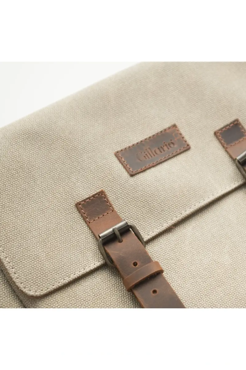 Canvas Leather Beige Messenger Bag | Adjustable Strap Everyday Bag
