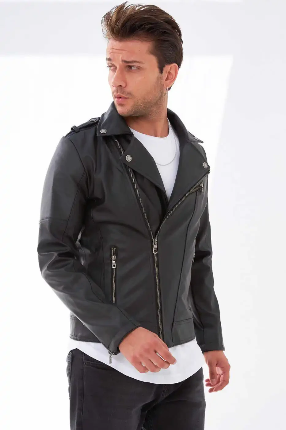 The Cross Zipper Men's Leather Jacket is a must-have for any man's wardrobe. Order yours today to look stylish and chic!