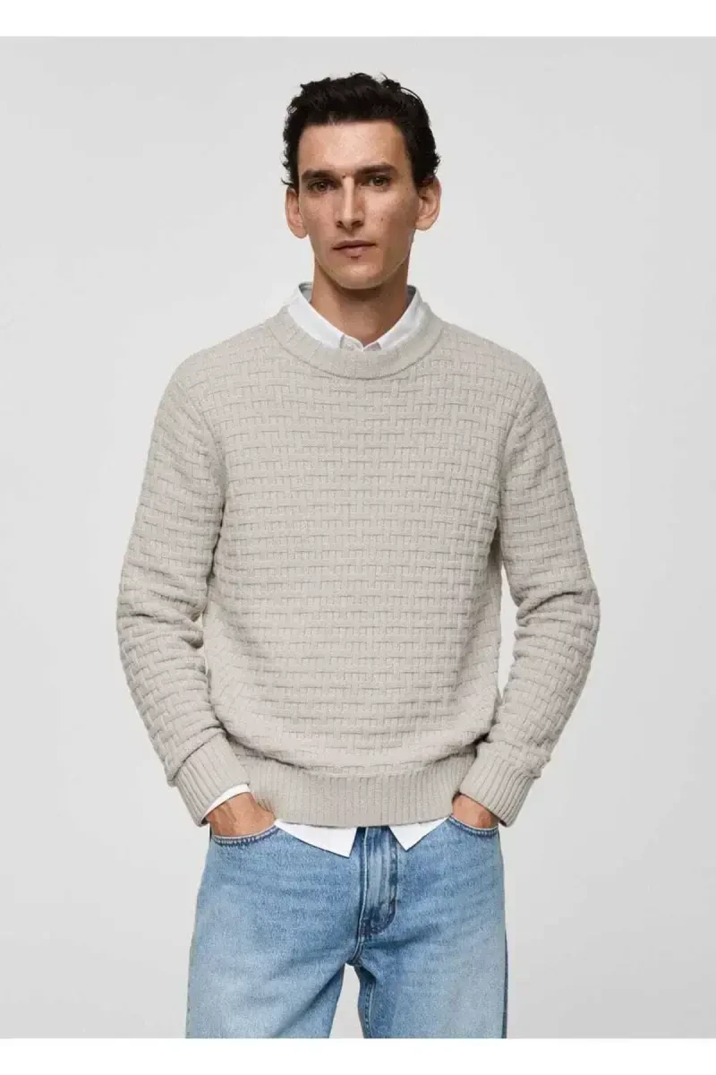 Cross Knitted Sweater, MANGO, Sweater, Cotton Sweater, Long Sleeve Sweater, Regular Fit Sweater, Straight Leg Sweater