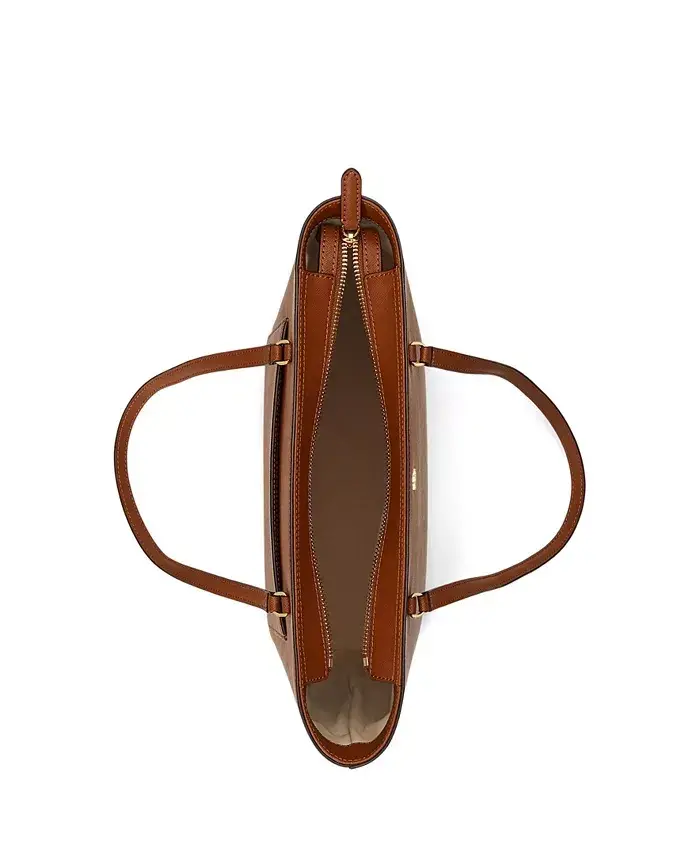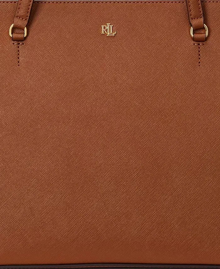 Crosshatch Leather Medium Karly Shopper Tote - Lauren Tan