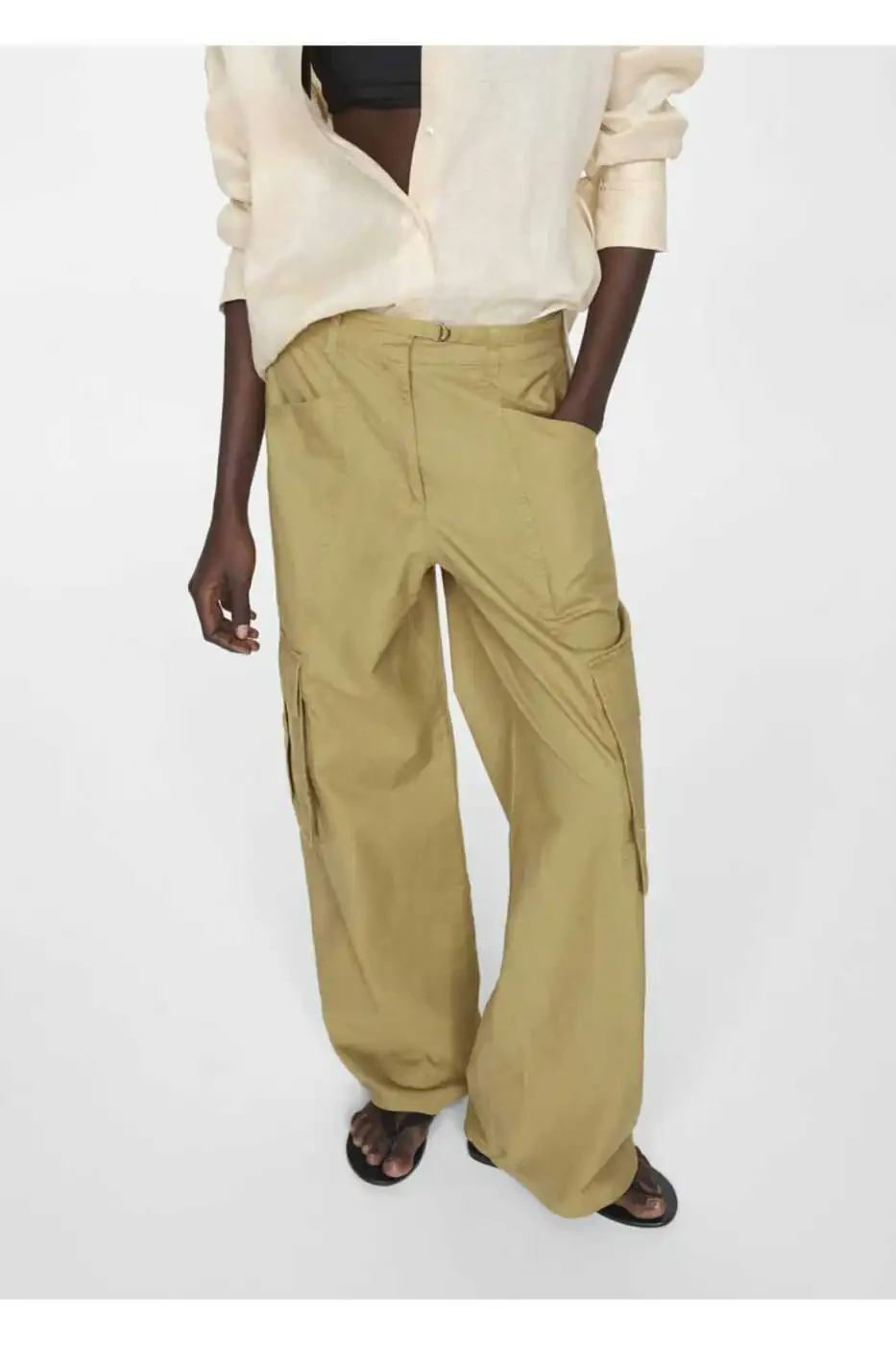 **Cargo Pants with Pockets**This product will be shipped by Trendyol.**Product Features:*** Material: Linen and cotton blend* Design: Cargo, Wideleg* Cut: Long* Waist: Normal* Pockets: Two patch pockets on the front, two flap pockets on the sides, two flap pockets on the back* Closure: Belt loops, belt buckle closure, hidden button, button and zipper closure* Inside leg length: 78.5 cm* Side seam length: 107.4 cm**Care Instructions:*** Machine wash at 30°C* Do not bleach* Iron at a maximum of 110°C* Dry clean with perchloroethylene* Do not tumble dry**Additional Information:*** More than 5 units are offered for sale at a campaign price.* A maximum of 10 units of this product can be ordered.* Free returns within 15 days.* Order cancellations are subject to Trendyol's discretion.
