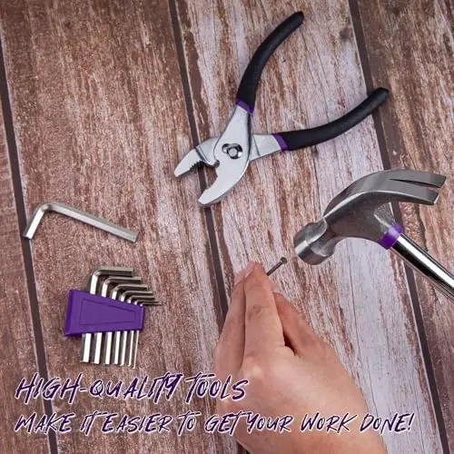 Complete Tool Collection: Comes with a full range of essential tools for tackling minor repairs and DIY tasks, featuring a hammer, pliers, screwdrivers, a tape measure, and numerous other items Sturdy and reliable: Constructed with heat treatment and chrome plating for superior corrosion resistance Convenient Storage Solution: Equipped with a plastic toolbox for neat organization and safekeeping of all your tools Easy to Carry: The toolkit is designed to be lightweight and features a convenient carrying handle, perfect for taking along to any location Great Present Option: This toolkit makes an excellent present for friends and family, suitable for birthdays, holidays, housewarming parties, and other special events