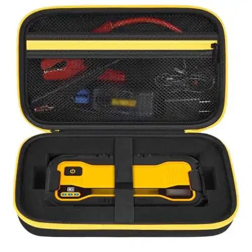 **Case Compatible with DeWalt DXAELJ16 1600 Peak Amp Jump Starter Battery Booster, Portable Jumper Storage Holder Pocket for USB Power Station (Box Only) Black**The jump box bag with customized grooves is specifically designed for dewalt dxaelj16 1600 peak amp jump starter. The organizer for dewalt air compressor also has a zippered mesh pocket to store accessories like powder coated metal clamps, charger, keeping all your battery jumper starter accessories organized in one place. (For sale is case only, not include the device)**Features:*** **Compatible Device:** DeWalt DXAELJ16 1600 Peak Amp Jump Starter* **Customized Grooves:** Holds your jump starter in place* **Zippered Mesh Pocket:** Stores accessories such as powder coated metal clamps, charger* **Dense Foam Lining:** Protects your device from bumps and scratches* **Sturdy Outer Shell:** Provides protection against dust, water, and impacts* **Velcro Straps:** Secures your jump starter* **360 Degree Zipper:** Allows for easy access and storage* **Carrying Handle:** Enables easy one-handed transport* **Dimensions:** 9.45*5.7*2.75 inches**Benefits:*** Keeps all your jump starter accessories organized in one place* Protects your device from dust, impacts, and scratches* Ideal for travel, emergencies, and as a backup* Makes a great gift for your loved ones**Note:** Case only, device not included.