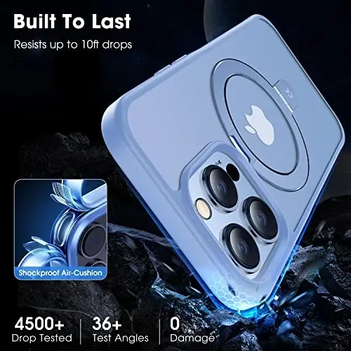 All-New MagicStand Series - Beyond Being: After years of deliberate planning and designing, CASEKOO is the FIRST TO ENGINEER the brand-new Invisible MagicStand Series compatible with iPhone 13 Pro case. We combined the strong magnetic technology with a foldable kickstand by applying our compact and practical design philosophy. MagicStand case easily attaches to all MagSafe accessories. The versatile kickstand on the back of the phone case folds back into a groove when unused Effortless Stand, Carefree Viewing: CASEKOO designed for iPhone 13 Pro case incorporates an innovative invisible stand design with an exclusive appearance patented. Constructed with the LIGHTWEIGHT YET DURABLE aerospace aluminum alloy, the circular kickstand brings the portability of the phone case to a new level. In addition, it can be placed in portrait or landscape mode stably. You can adjust it between 40°~120° as your wish. Enjoy every watching moment Ultra Magnetic Magic: The MagicStand Case is compatible with all MagSafe accessories and third-party Qi-certified wireless chargers. It provides a built-in 48 pcs magnets ring structure, explicitly arranged with CASEKOO's MagPrime array technology, allowing for 2 TIMES STRONGER magnetism than the Official's. MagPrime ensures almost 0% POWER LOSS during wireless charging, making charging FASTER YET SAFER. It shortens overall charging time and further improves your wireless charging experience Redefining Military-Grade Drop Protection: Based on 5000+ extreme drop resistance tests, the MagicStand case's DURABILITY AND STURDINESS surpass most general phone cases. Furthermore, the shockproof polycarbonate back and the airpad increase its durability and protect your phone against everyday drops and bumps. A 2.5 mm offset border over the camera opening prevents the lens from being scratched; a 1.5 mm bezel over the screen keeps your Phone screen from damage Simplicity Without Compromise: CASEKOO compatible with iPhone 13 Pro Phone case comprises a premium matte semi-transparent cover to offer a silky touch feeling. The NON-SLIP grip design on the side of the case provides effective SLIP-RESISTANCE AND TRACTION. Thanks to the long-term anti-fingerprint tech, you can clean this case easily with just a gentle wipe to make all fingerprints invisible