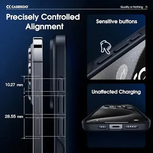 The CASEKOO for iPhone 15 Pro case not only provides superior protection but also stands out with its stylish design and ease of use. The frosted texture of the case provides a unique feel while holding your phone in your hand and minimizes problems such as fingerprints, scratches, and oil. Its thin and lightweight design makes your daily use easier without increasing the weight of your phone. Made of high-quality materials, this case offers long-lasting use and protects your phone against all kinds of external factors. With CASEKOO, your iPhone 15 Pro will be both safe and stylish.