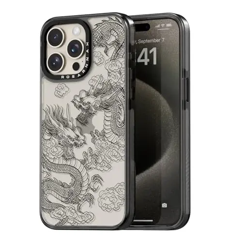 iPhone 15 Pro Case - Casevivid Aesthetic, Shockproof, Black Dragon
