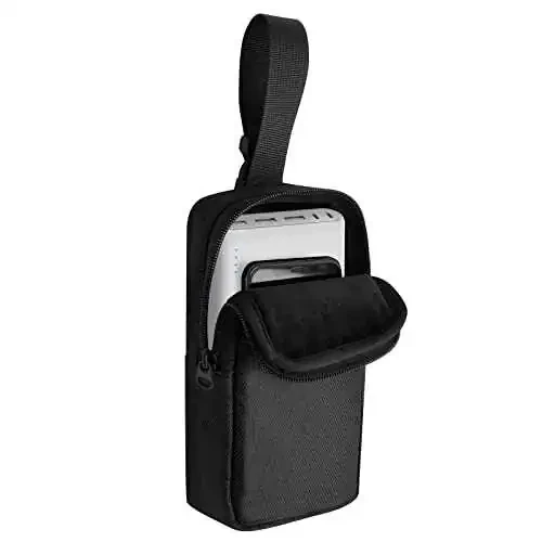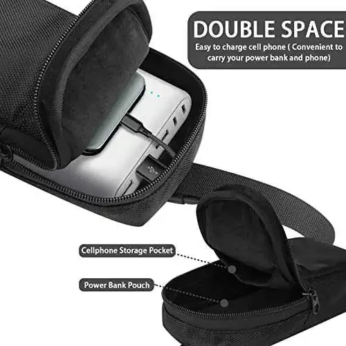 Internal Size: 7.56" x3.74" x 2.24". This storage carrying case is specially designed for Anker portable charger PowerCore 26800mAh / powercore+26800mAh Perfect Fit: lightweight and portable bag case also compatible with Lab599 Tx500 Radio; RAV Power 26800mAh /20100mAh/20000mAh; EasyAcc 10000mAh/ 15000mAh; Dulla M50000 Portable Power Bank 12000mAh; Miady 10000mAh/15000mAh power bank, ROMOSS 30000mAh and other power banks. This carrying case is made of nylon, 3mm Expanded Polyethylene and crystal super soft fabric. The case is shockproof, dustproof and waterproof, protecting your device from scratches and slight bumps The protective case has an adjustable nylon cord and an interior pouch for your phone. Designed to store your power bank and phone together for easy travel. Made in China. For sale is case only.