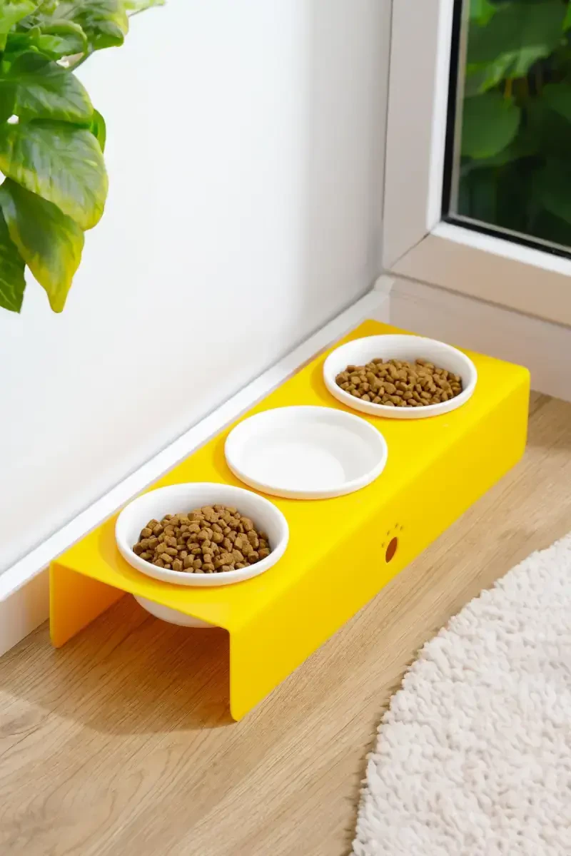 Dear cat and dog owners, get ready to meet the Relaxco Cat and Dog Food Water Bowl, which will take your beloved pets' feeding experience to a whole new level! This special design is designed to ensure that your pets feed comfortably and enjoyably, prioritizing elegance, usability, and your pet's health. This stylish feeder, which offers the opportunity to serve food and water together with its three ceramic bowls, will add an elegant touch to your home's decoration. Relaxco always prioritizes the comfort and health of your pets. For this reason, the ergonomics of cats and dogs have been taken into account in the design of our food bowl. Thanks to its raised design, your beloved pets will stand in a more natural position while eating, which will facilitate their digestion and reduce the risk of vomiting. This feature offers a great advantage especially for elderly cats or cats with joint problems.Our stand, made of first-class 5 mm plexiglass material, is much more durable and unbreakable than glass. In this way, it offers long-lasting use while ensuring the safety of your pets. Ceramic bowls stand out for being hygienic and easy to clean. These bowls, which can be washed by hand or in the dishwasher, always provide a clean and healthy feeding environment.The stylish yellow color of our food bowl adds vitality to your home, while its minimalist design adapts to all kinds of decoration. Your pet's feeding corner will no longer be just a need, but also a detail that adds value to your home. Relaxco Cat and Dog Food Water Bowl is not just a food bowl, but also a sign of love that strengthens the bond between you and your pet. Take action now to invest in their health and happiness!This product is offered to you with Relaxco assurance. Hurry to take advantage of the campaign price, stocks are limited. The selling price of the product is determined by the seller and may be offered for sale by more than one seller. Sellers are ranked by considering their prices, points, delivery status, promotions, whether shipping is free and fast delivery options. Trendyol reserves the right to cancel orders over 20 units. Different limits may be set for corporate orders. If you are not satisfied with the product, you can benefit from the free return option within 15 days.