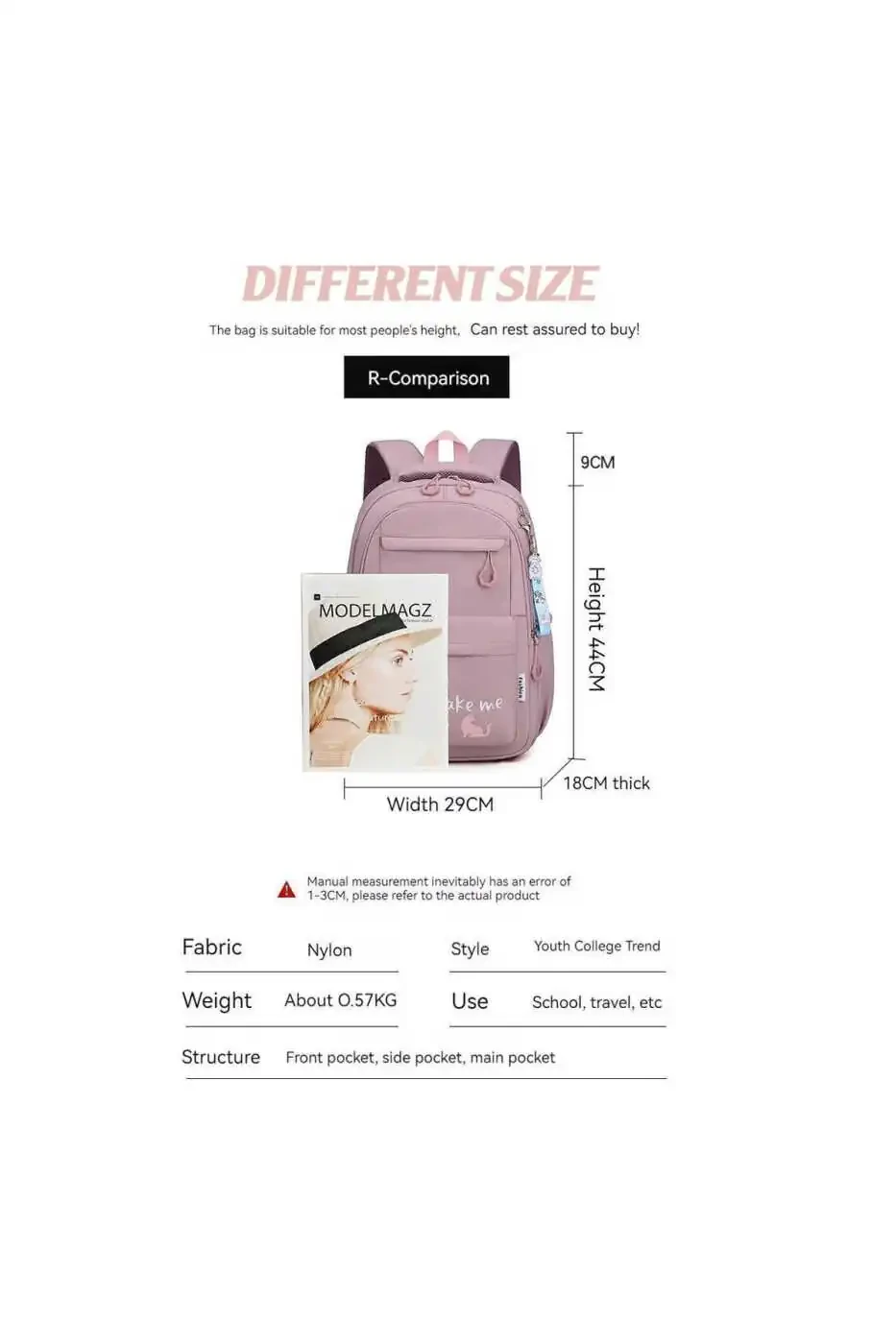- Spacious and roomy interior provides enough space for notebooks, books, pens and other school supplies.