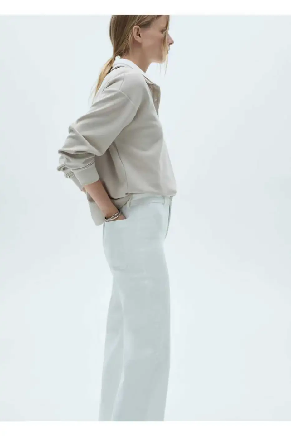 * **Details:** Belt loops, back pockets, zipper and button closure, hem without seam