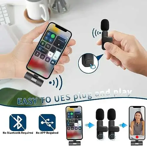 Caymuller Professional Wireless Lavalier Lapel Microphone, iPhone, iPad ve diğer cihazlarınız için mükemmel bir ses çözümüdür. Bu şık ve kompakt mikrofon, ultra düşük gecikme süresi, gürültü azaltma teknolojisi ve plug-and-play özelliği ile video kaydı, röportaj, podcast, vlog, YouTube ve TikTok gibi uygulamalar için idealdir.