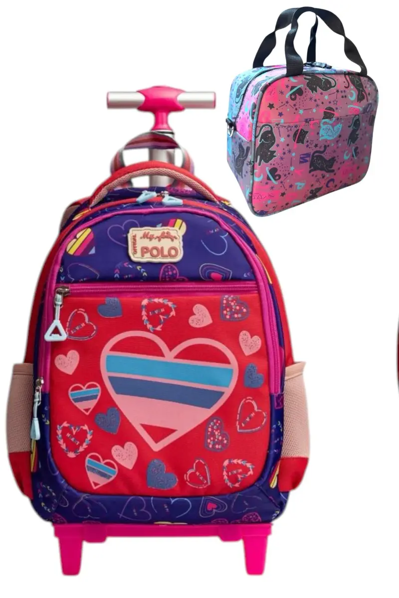 çekçekli ilk okul çantası beslenme takımlı ısı yalıtımlı ikili takım çok gözlü-Çok Renkli kalpli