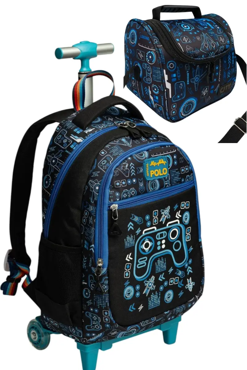 çekçekli ilk okul çantası beslenme takımlı ısı yalıtımlı ikili takım çok gözlü-Çok Renkli oyun