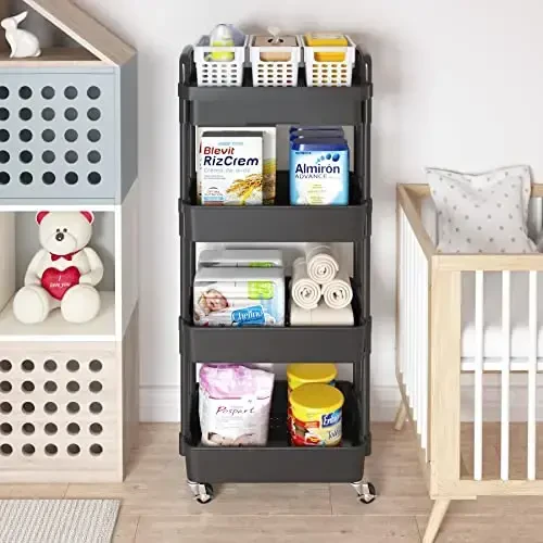 Calmootey 4 Katlı Tekerlekli Çok Amaçlı Yardımcı Sepet, evinizin her köşesinde düzeni sağlamanıza yardımcı olacak pratik ve şık bir çözümdür. Montajı kolaydır ve uzun ömürlü kullanım için dayanıklı malzemelerden üretilmiştir.