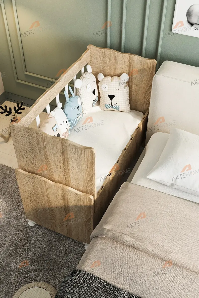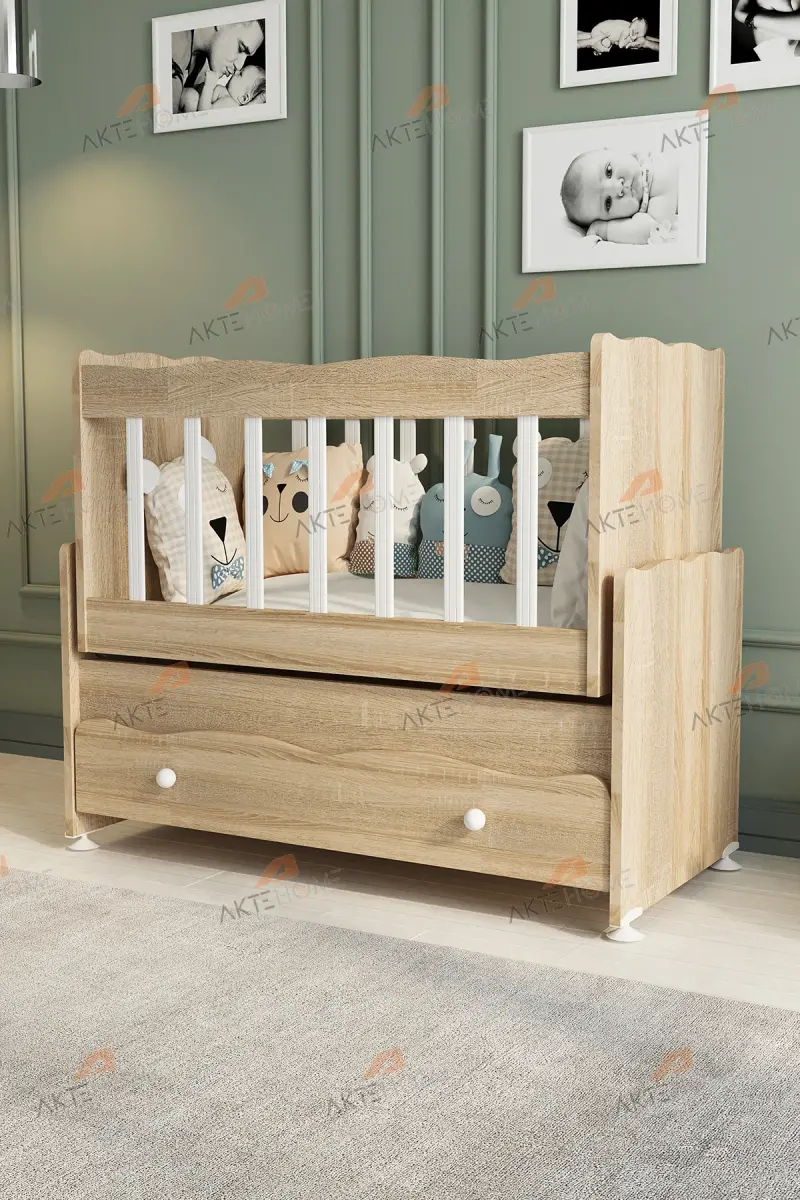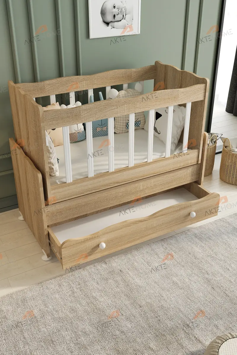 Çekmeceli Sallanır Anne Yanı Ahşap Bebek Beşiği Sonoma-AHŞAP SONOMA