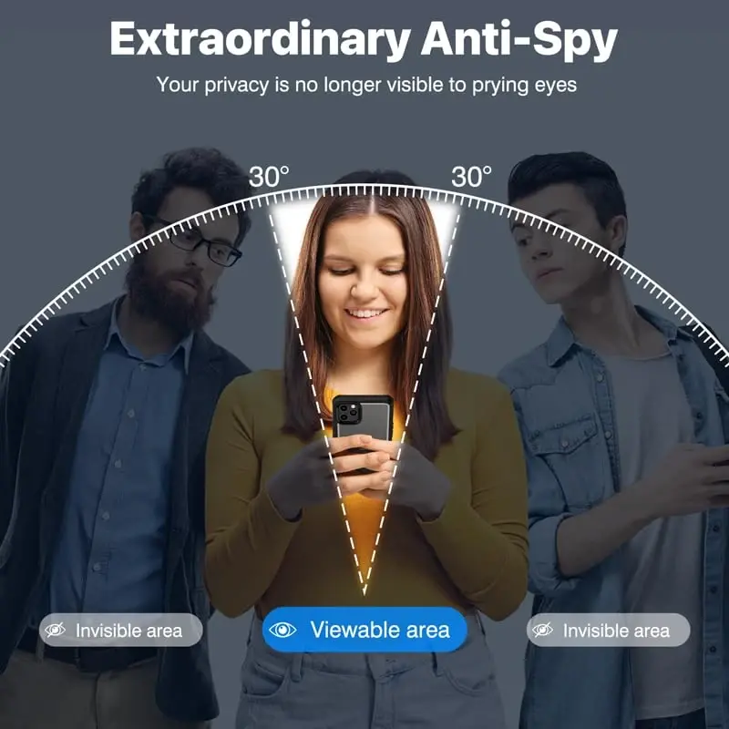 CENHUFO iPhone 11 Pro Max uchun shaxsiy maxfiylikni himoya qiluvchi g‘ilofi bilan maxfiyligingizni himoya qiling va telefoningizni to‘liq himoya qiling. Ushbu g‘ilof iPhone 11 Pro Max (6,5 dyuym) modeliga mukammal mos keladigan tarzda ishlab chiqilgan. Ichki 9H qattiqlikdagi temperli shisha maxfiylik ekran himoyachisi tufayli ekraningizdagi kontent faqat sizga ko‘rinadi, boshqalarning qiziquvchan nigohlaridan uzoqda bo‘lasiz. Xoh xabar almashing, xoh mobil to‘lov qiling, xoh shaxsiy ishlaringizni hal qiling, maxfiyligingiz har doim himoyalangan bo‘ladi. G‘ilofning shaffof orqa yuzasi telefoningizning asl go‘zalligini namoyish etsa, yuqori sifatli himoya ramkasi va yumshoq TPU zarbani yutuvchi xususiyati tufayli telefoningizni tushishlar va zarbalardan himoya qiladi. Burchaklardagi havo yostiqchalari qo‘shimcha himoya qatlamini ta’minlab, telefoningiz xavfsizligini maksimal darajaga chiqaradi. Faqat ekran emas, balki kamera ham xavfsiz! Ko‘tarilgan qirralar kamerangiz uchun qo‘shimcha himoya ta’minlasa, birga kelgan orqa kamera linzalari himoyachisi fotosurat sifatiga putur yetkazmagan holda telefoningiz kamerasini tirnalish va shikastlanishdan himoya qiladi. CENHUFO iPhone 11 Pro Max uchun shaxsiy maxfiylikni himoya qiluvchi g‘ilofi nafaqat telefoningizni himoya qiladi, balki sizga ajoyib foydalanuvchi tajribasini ham taqdim etadi. Barcha tugmalar, dinamik, kamera va ulanish portlariga aniq kirish imkonini beradi. Toza ovoz sifati va mukammal ushlashni ta’minlaydi. Simsiz zaryadlashni qo‘llab-quvvatlaydi, shuning uchun telefoningizni g‘ilofni yechmasdan osonlik bilan zaryadlashingiz mumkin. CENHUFO sifatida biz mijozlar ehtiyojini qondirishga katta ahamiyat beramiz. Shu sababli, mahsulotimiz bilan bog‘liq muammolarga duch kelsangiz, bir yillik kafolat xizmatini taklif etamiz. Xarid qilgan mahsulotdan mamnun bo‘lmasangiz, iltimos, biz bilan bog‘laning. Sizga almashtirish yoki pulni qaytarishni ta’minlaymiz. CENHUFO iPhone 11 Pro Max uchun shaxsiy maxfiylikni himoya qiluvchi g‘ilofi bilan telefoningizdan bexavotir foydalaning va maxfiyligingizdan rohatlaning!