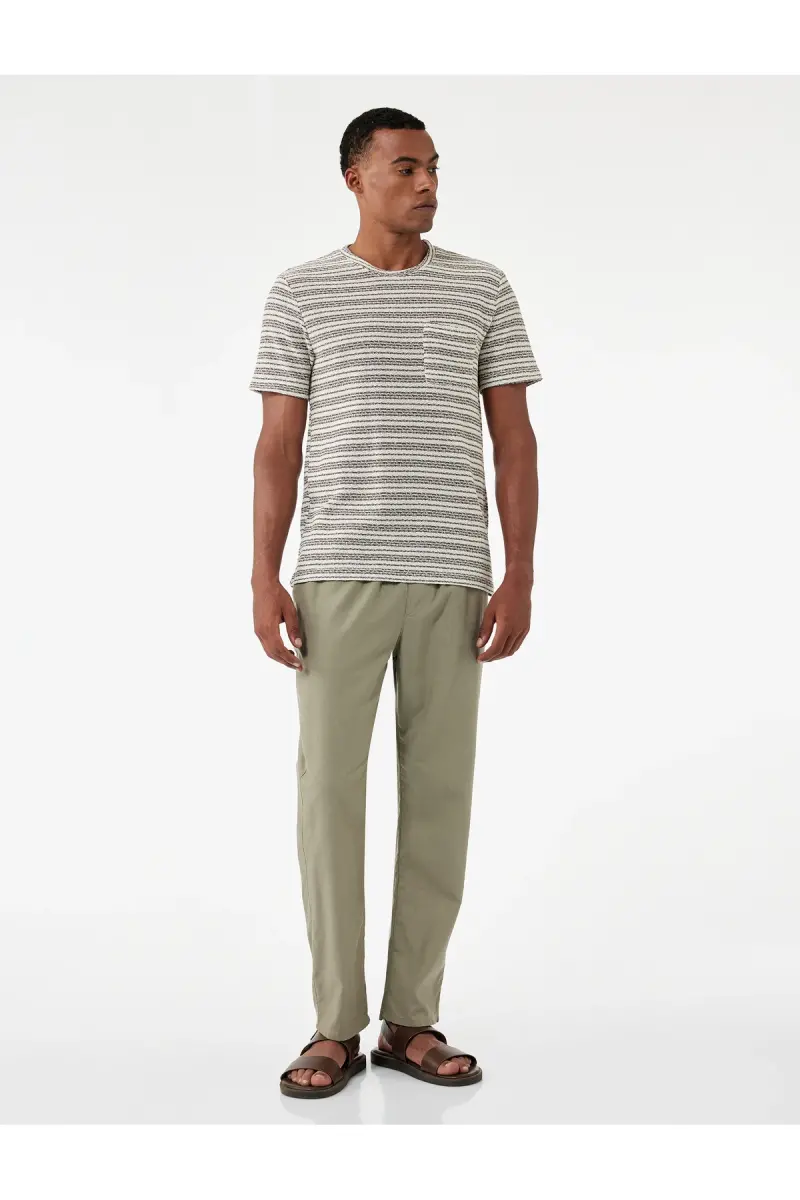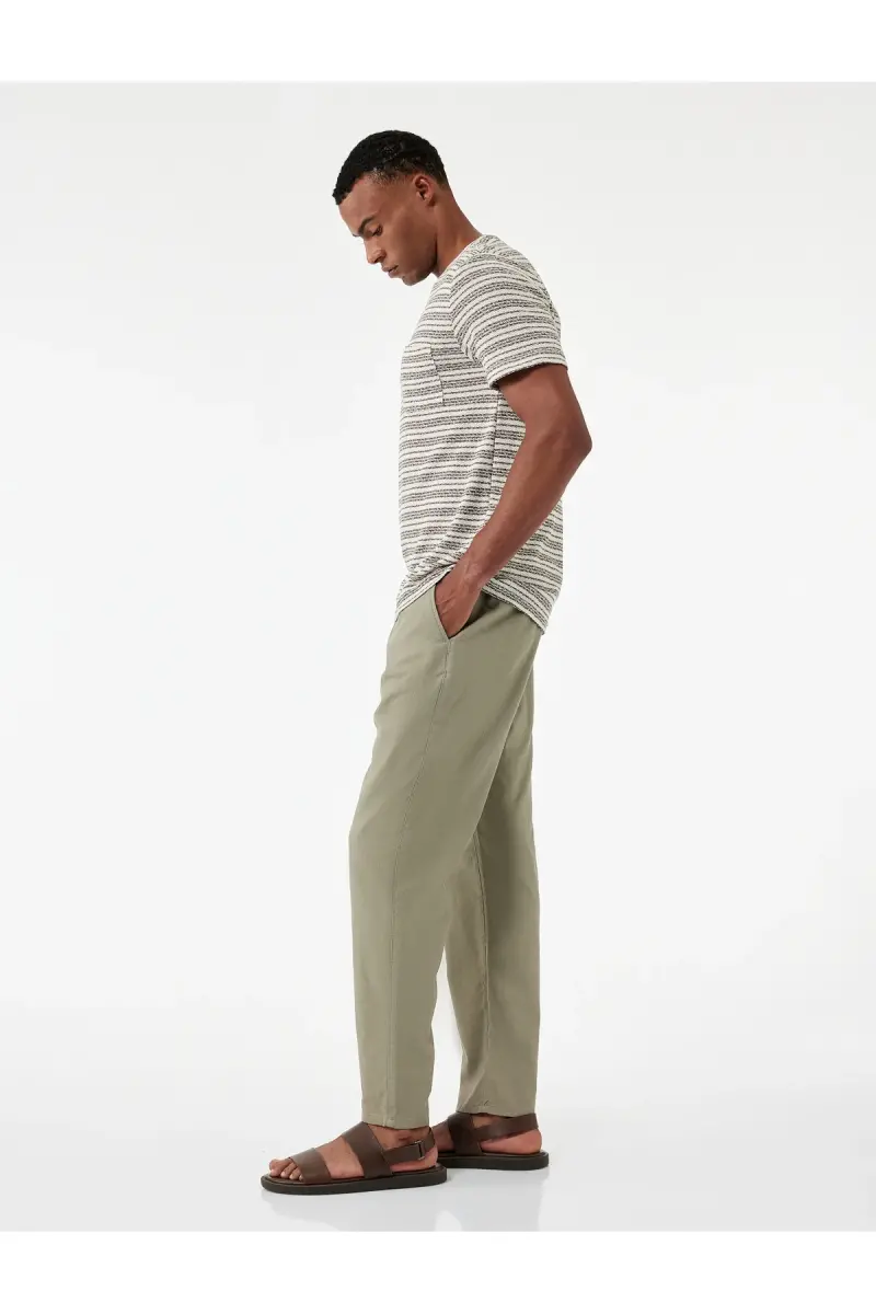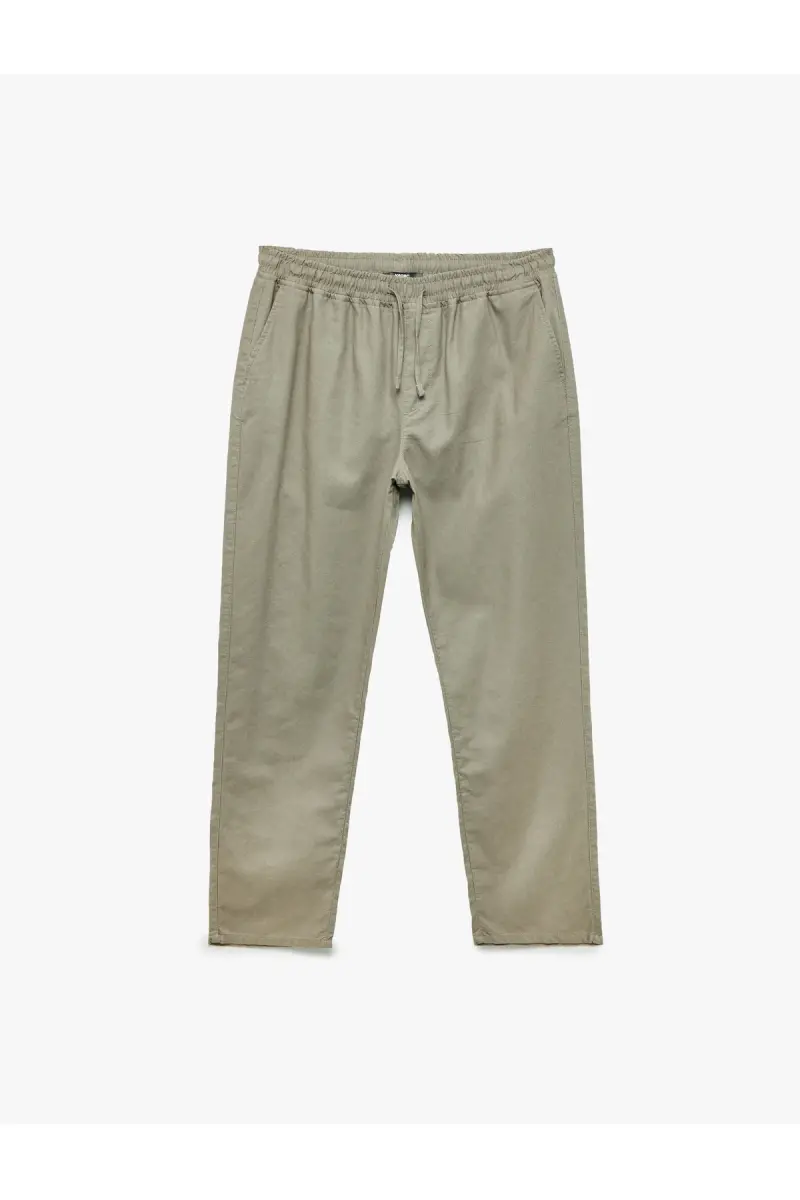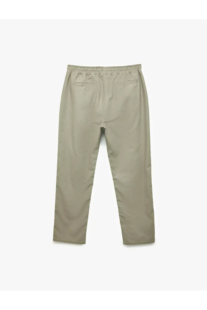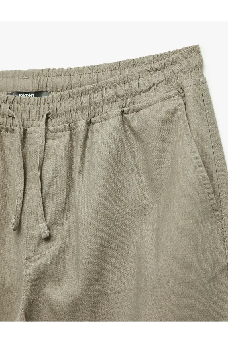 Cep Detaylı Keten Pamuk Karışımlı Beli Bağcıklı Pantolon-Haki
